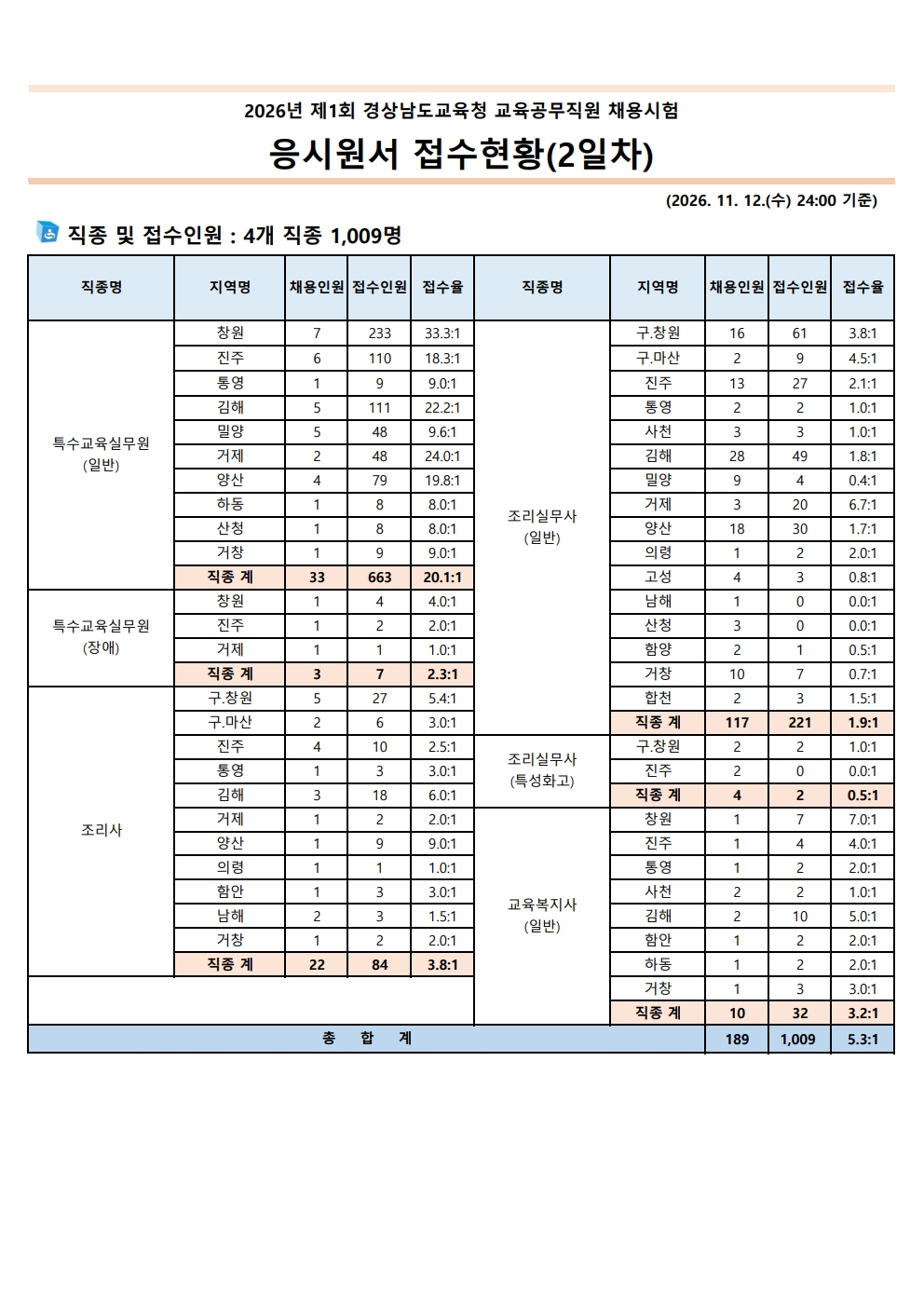 2026³â Á¦1ȸ °æ»ó³²µµ±³À°Ã» ±³À°°ø¹«Á÷¿ø ä¿ë½ÃÇè ÀÀ½Ã¿ø¼ Á¢¼öÇöȲ(2ÀÏÂ÷)