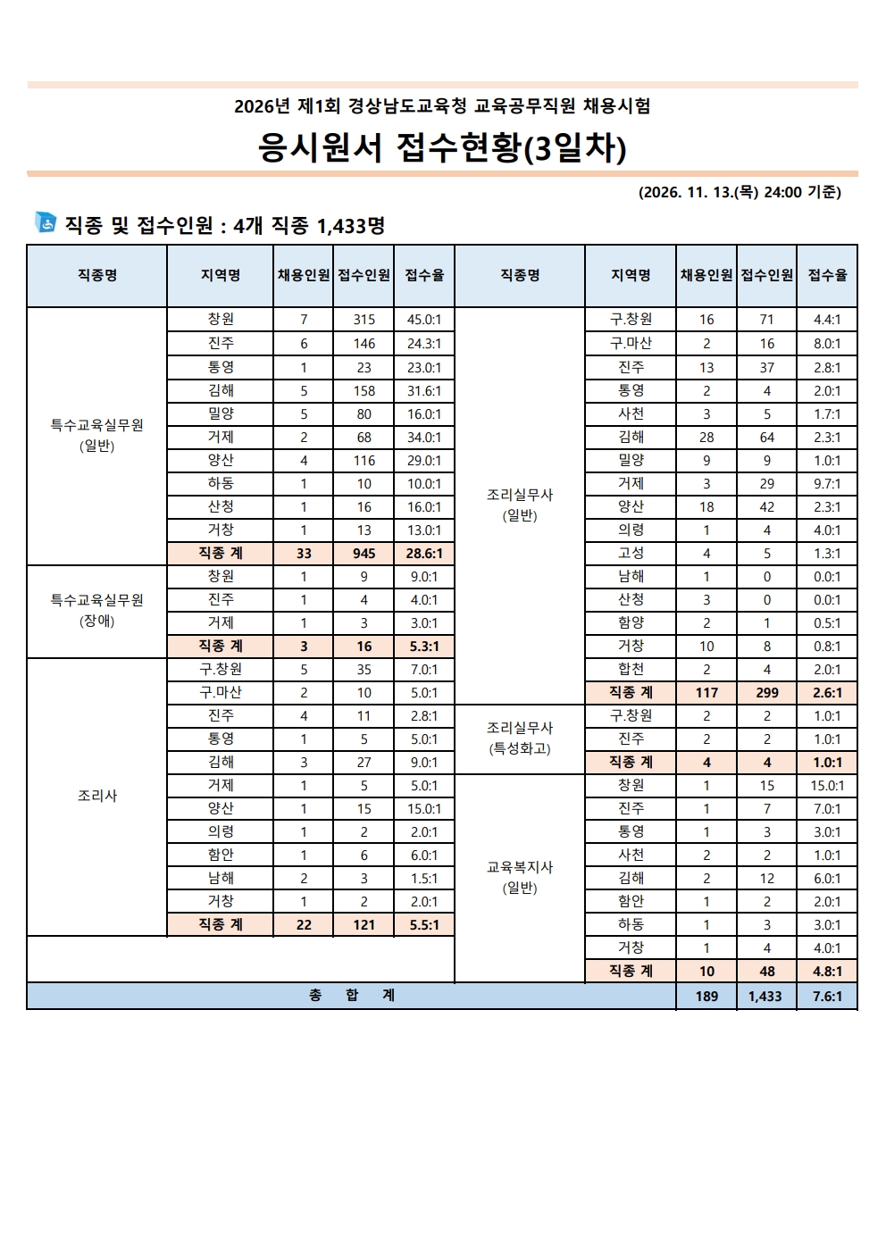 2026³â Á¦1ȸ °æ»ó³²µµ±³À°Ã» ±³À°°ø¹«Á÷¿ø ä¿ë½ÃÇè ÀÀ½Ã¿ø¼ Á¢¼öÇöȲ(3ÀÏÂ÷)