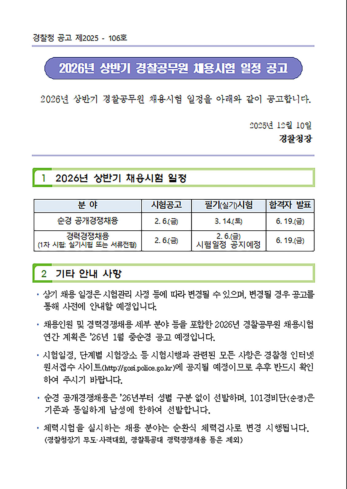 2026³â »ó¹Ý±â °æÂû°ø¹«¿ø ä¿ë½ÃÇè ÀÏÁ¤ °ø°í (Çʱâ : 3/14)