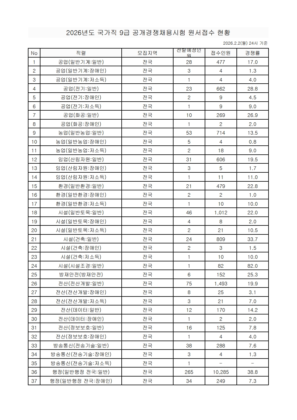 2026³âµµ ±¹°¡°ø¹«¿ø 9±Þ °ø°³Ã¤¿ë½ÃÇè ¸ðÁý´ÜÀ§º° ¿ø¼Á¢¼öÇöȲ_1ÀÏÂ÷.pdf