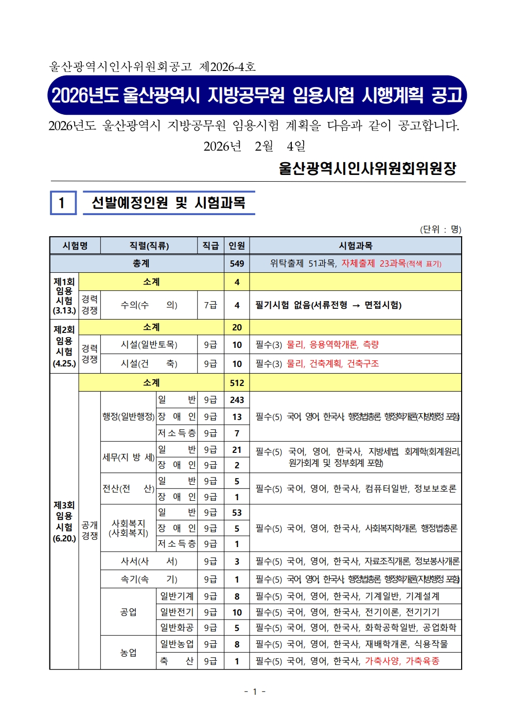 2026³âµµ ¿ï»ê±¤¿ª½Ã Áö¹æ°ø¹«¿ø ÀÓ¿ë½ÃÇè ½ÃÇà°èȹ °ø°í(Á¦2026-4È£).pdf