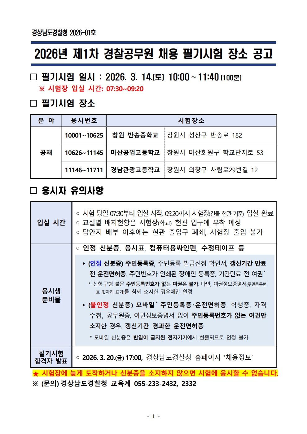2026³â+Á¦1Â÷+°æÂû°ø¹«¿ø+ä¿ë+Çʱâ½ÃÇè+Àå¼Ò+°ø°í.pdf