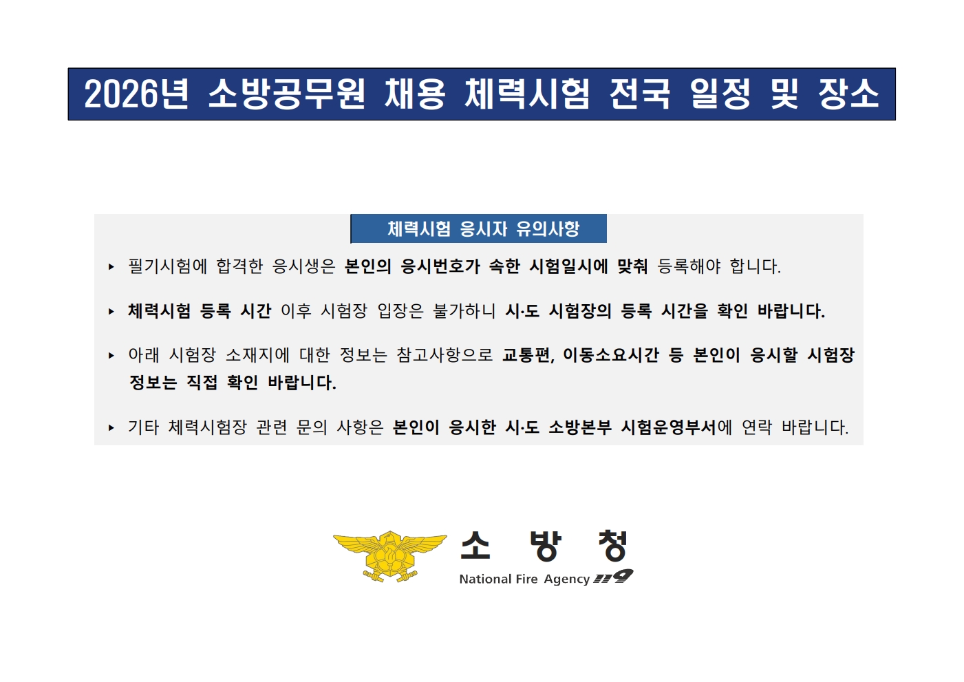2026³â ¼Ò¹æ°ø¹«¿ø ä¿ë ü·Â½ÃÇè ÀϽà Àå¼Ò µî °ø°í