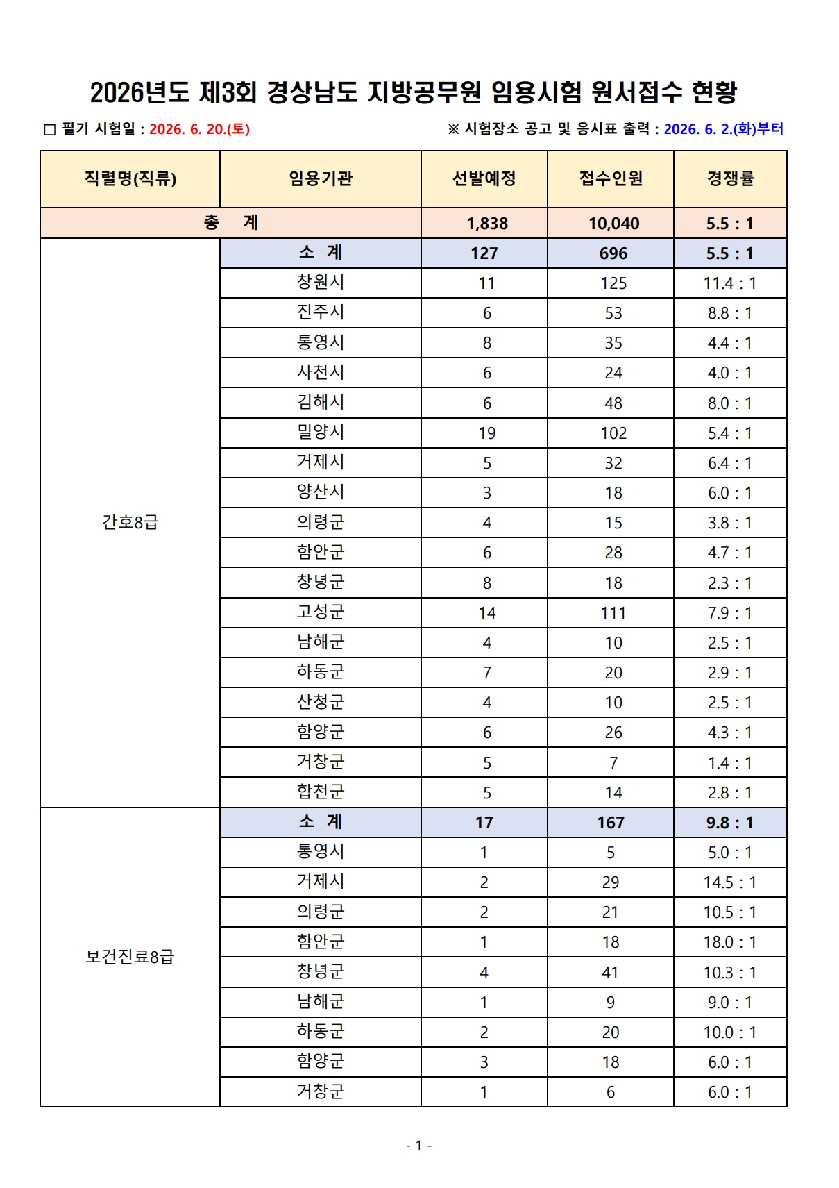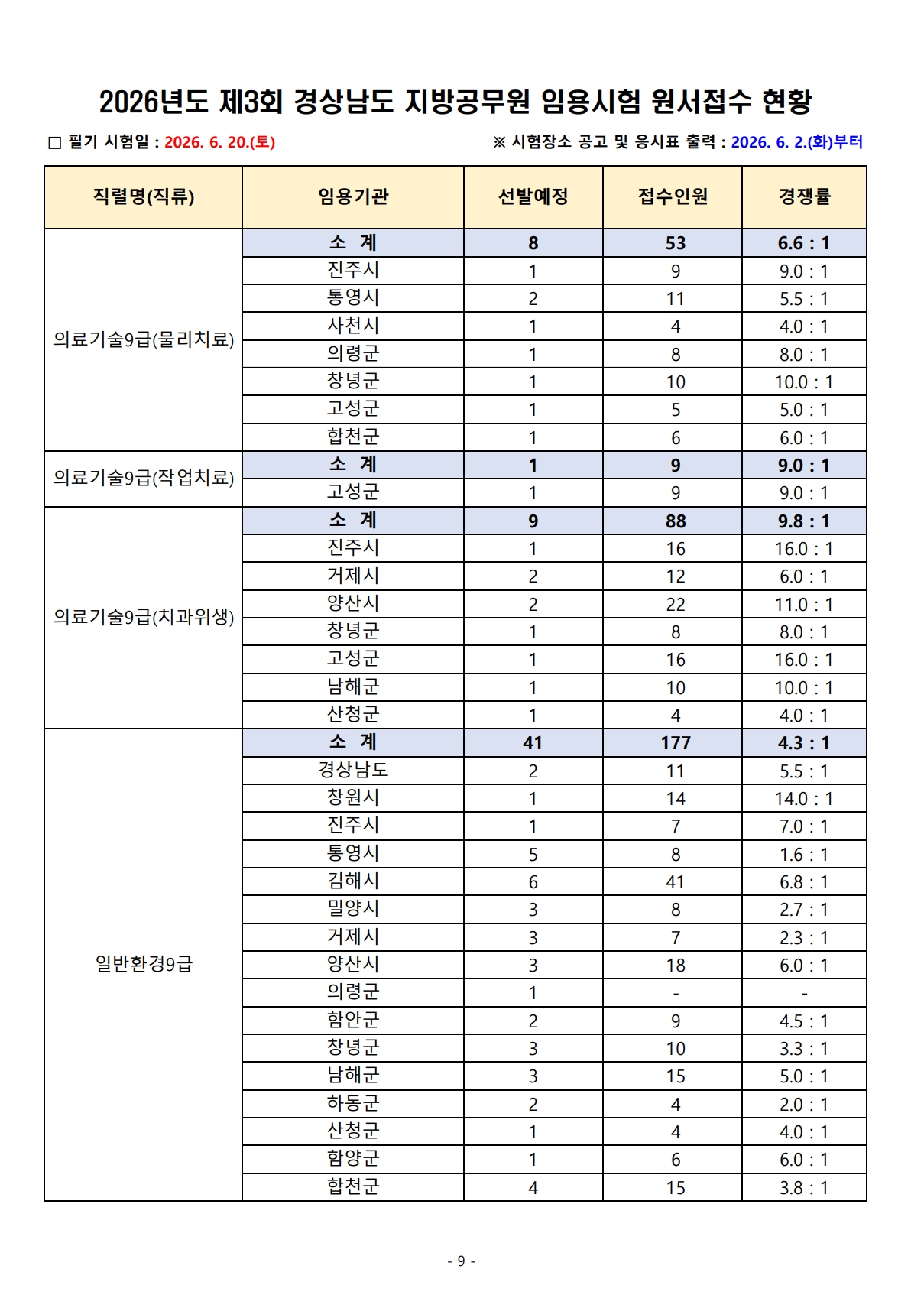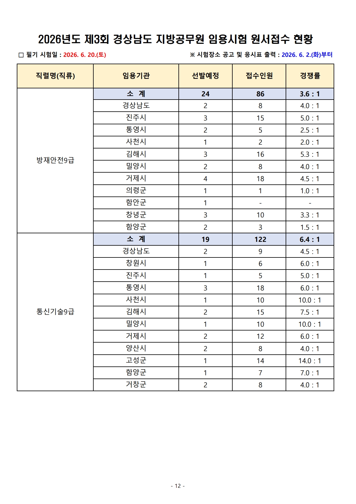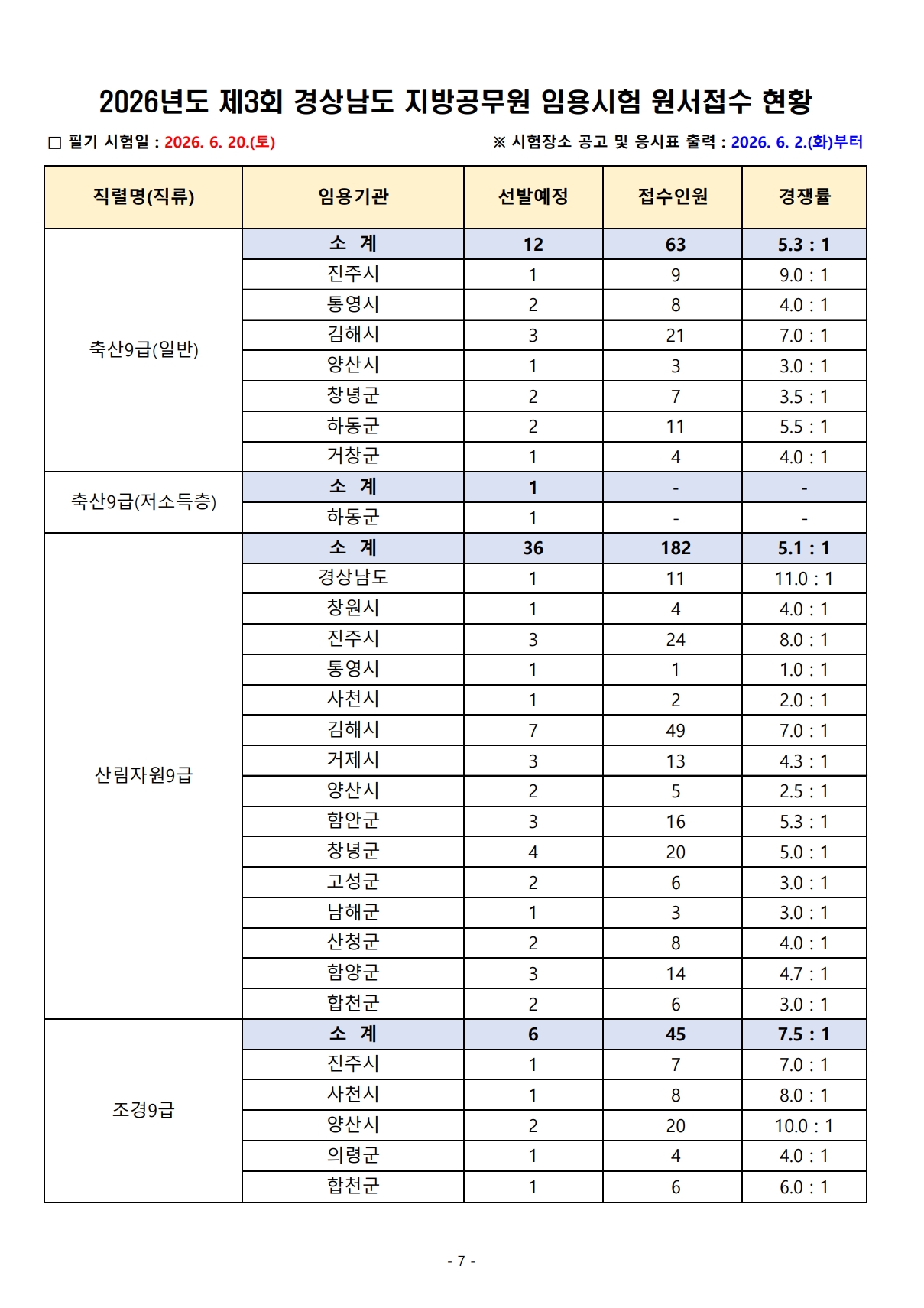 2026³âµµ Á¦3ȸ °æ»ó³²µµ Áö¹æ°ø¹«¿ø ÀÓ¿ë½ÃÇè ¿ø¼Á¢¼ö °á°ú¾È³»