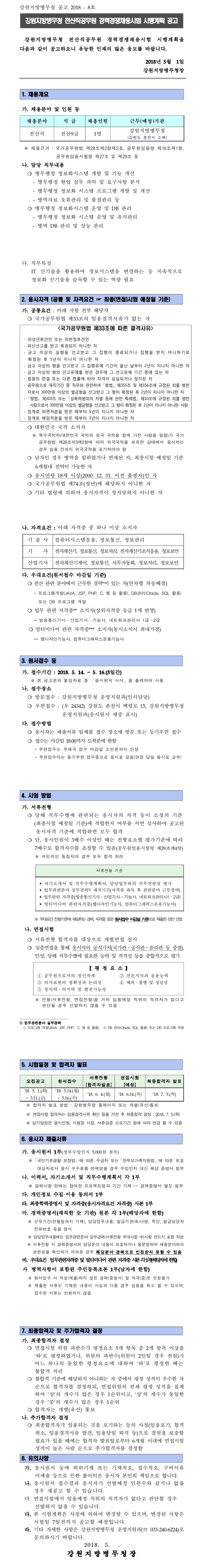 °¿øÁö¹æº´¹«Ã» Àü»êÁ÷°ø¹«¿ø °æ·Â°æÀïä¿ë½ÃÇè ½ÃÇà°èȹ °ø°í