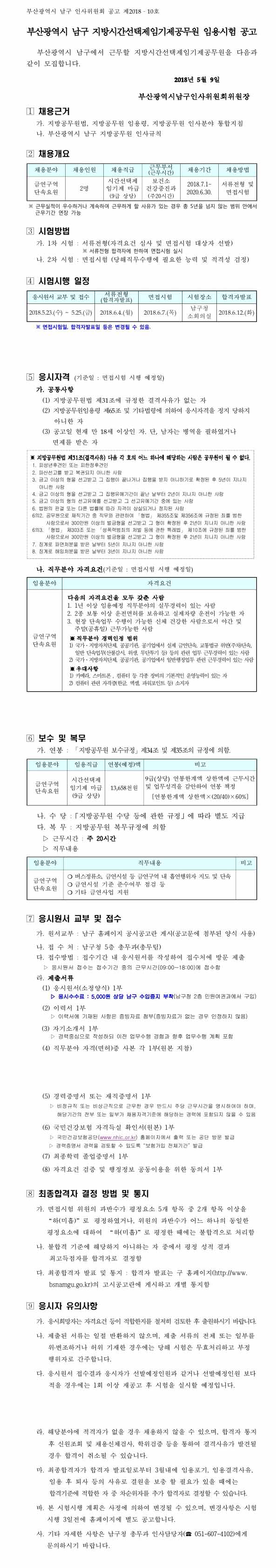 ºÎ»ê½Ã ³²±¸ Áö¹æ½Ã°£¼±ÅÃÁ¦ÀÓ±âÁ¦°ø¹«¿ø ÀÓ¿ë½ÃÇè °ø°í