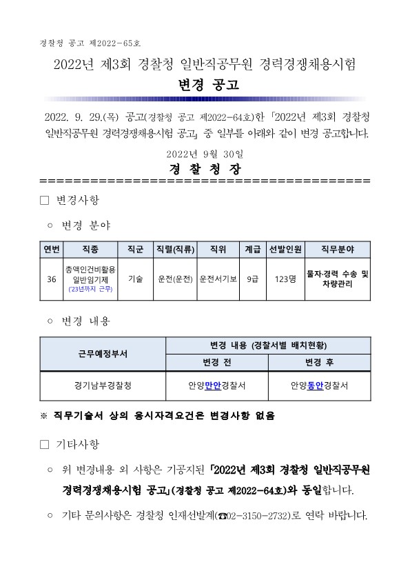 (°æÂûû °ø°í Á¦2022-65È£) 2022³â Á¦3ȸ °æÂûû ÀϹÝÁ÷°ø¹«¿ø °æ·Â°æÀïä¿ë½ÃÇè º¯°æ °ø°í.pdf