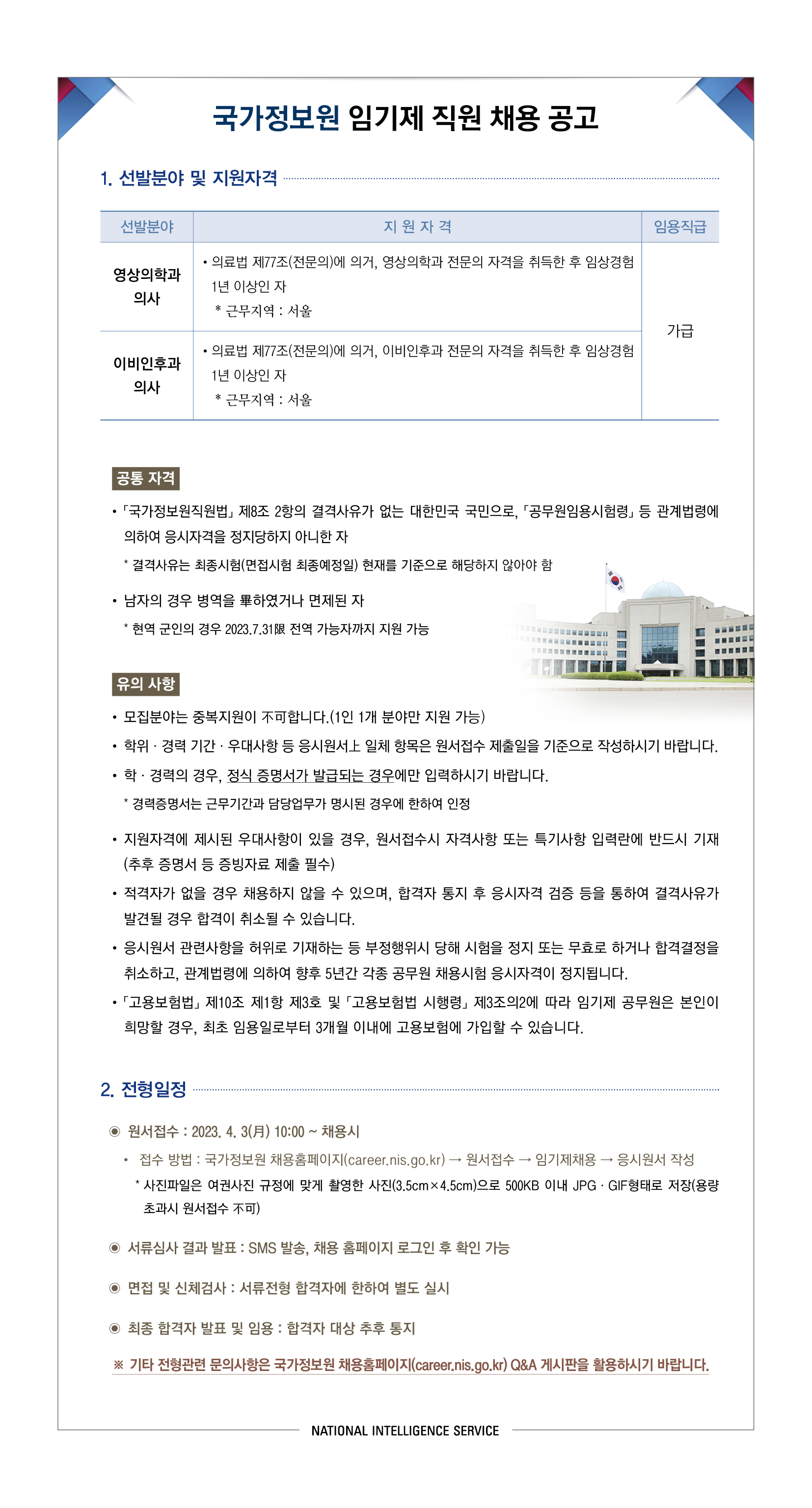 2023³âµµ ±¹°¡Á¤º¸¿ø ÀÓ±âÁ¦(ÀÇ»ç) Á÷¿ø ä¿ë °ø°í