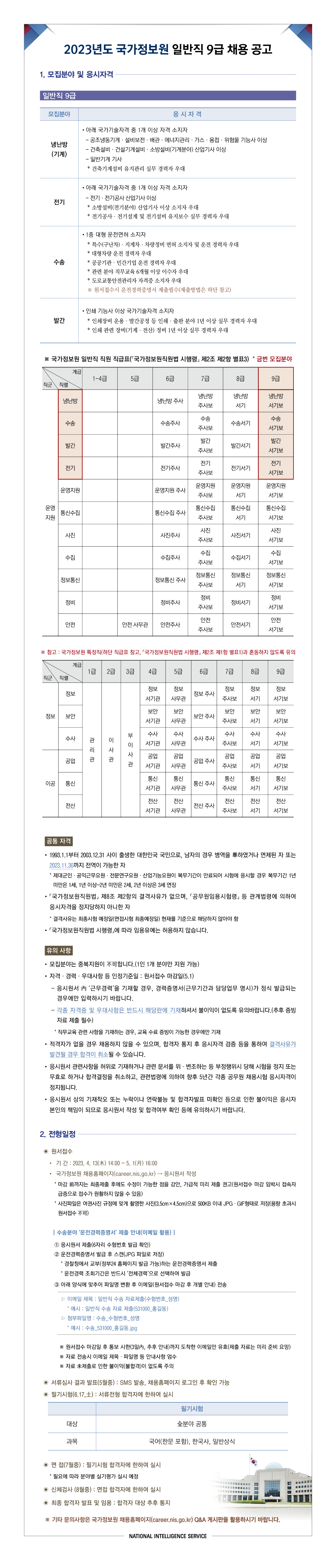2023³âµµ ±¹°¡Á¤º¸¿ø ÀϹÝÁ÷ 9±Þ ä¿ë °ø°í