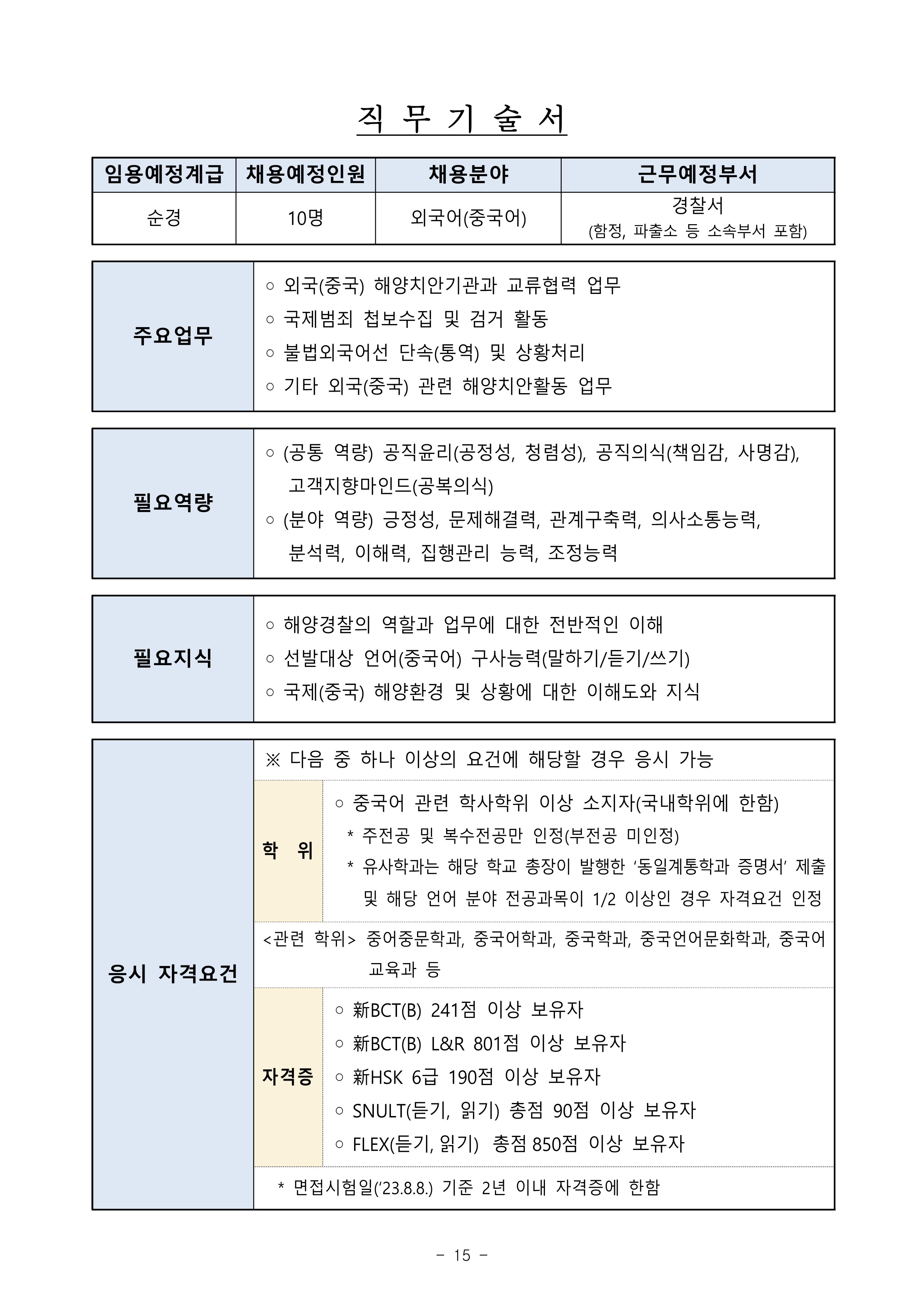 2023³â Á¦2Â÷ ÇØ¾ç°æÂûû °æÂû°ø¹«¿ø °æ·Â°æÀïä¿ë½ÃÇè °ø°í (25¸í ä¿ë)
