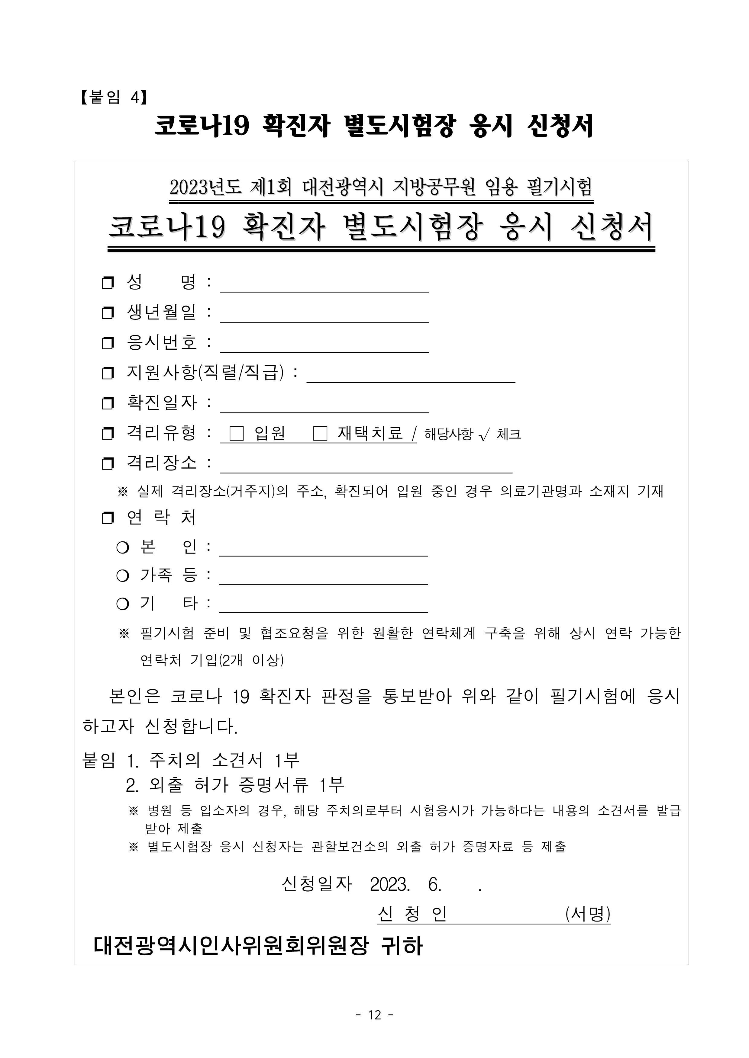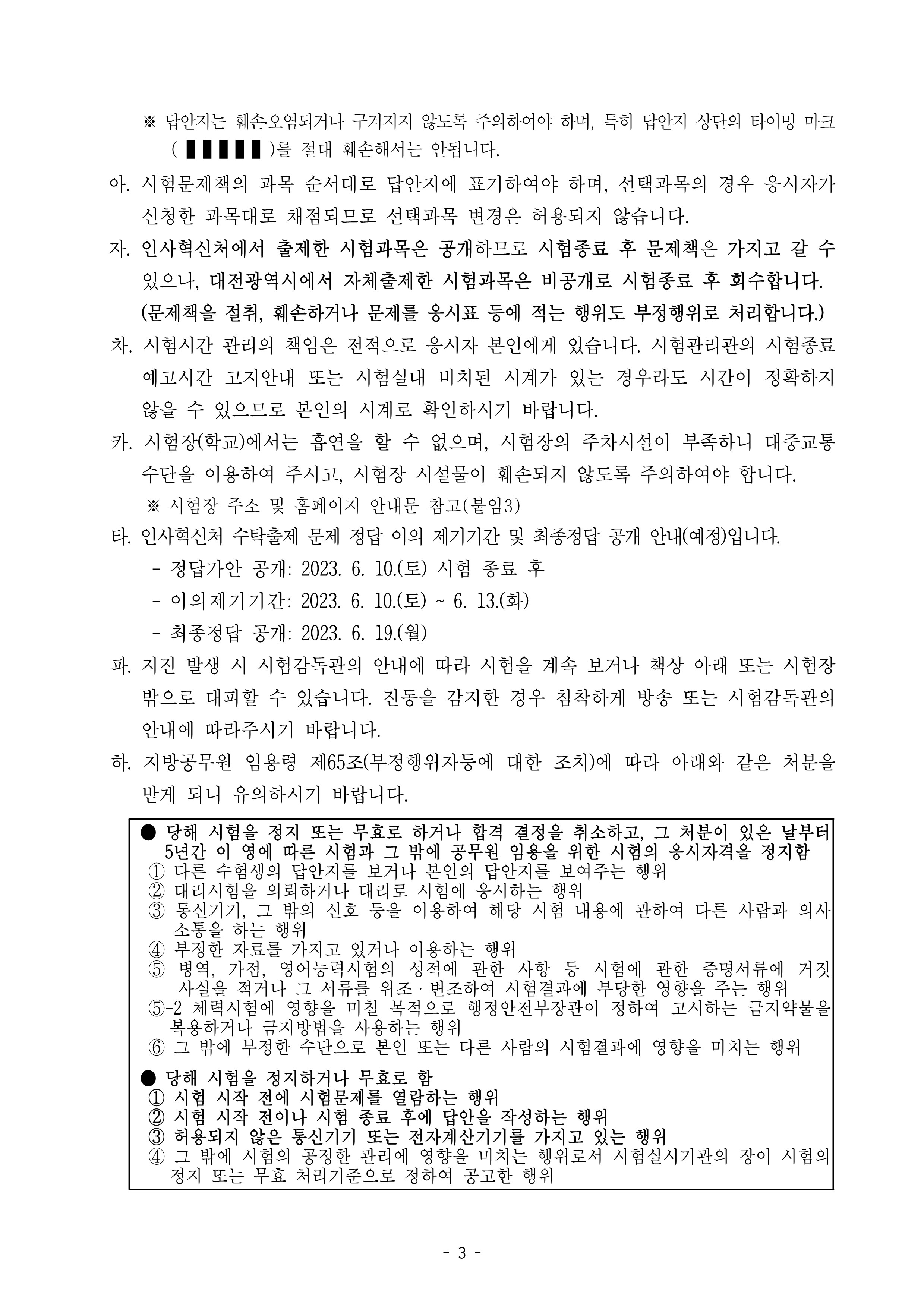 ¡Ú(°ø°í¹®) 2023³âµµ ´ëÀü±¤¿ª½Ã Áö¹æ°ø¹«¿ø Á¦1ȸ °ø°³(°æ·Â)°æÀï ÀÓ¿ë Çʱâ½ÃÇè Àå¼Ò °ø°í.pdf