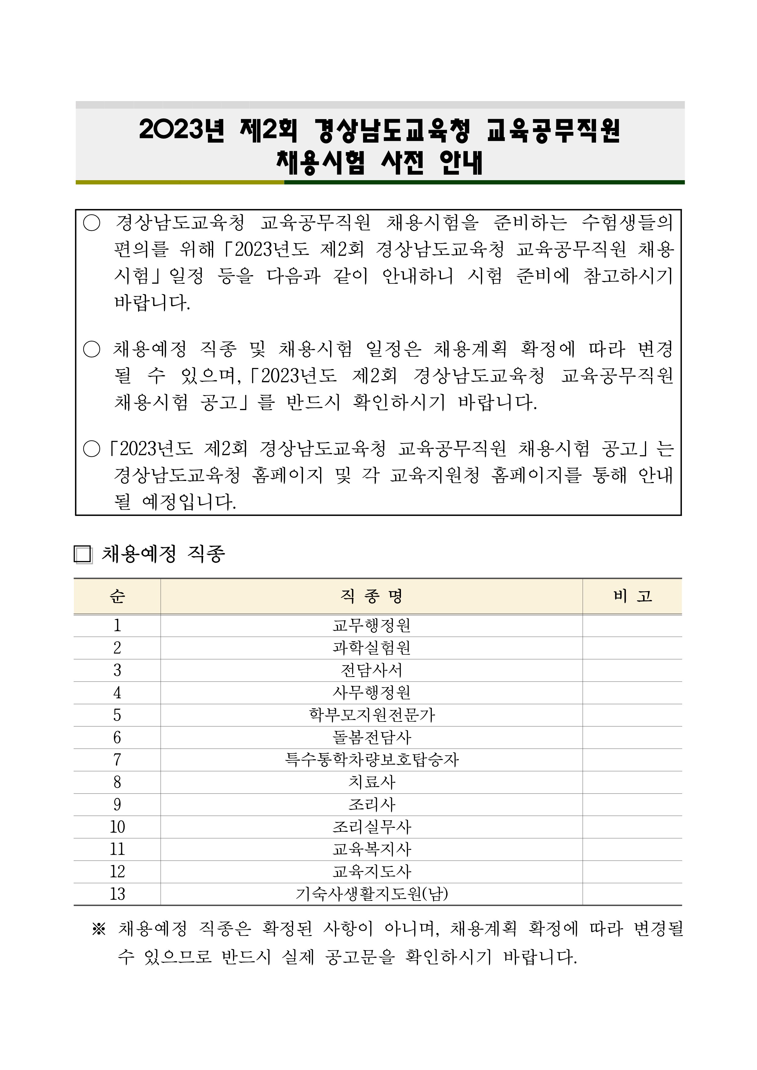 2023³â Á¦2ȸ °æ»ó³²µµ±³À°Ã» ±³À°°ø¹«Á÷¿ø ä¿ë½ÃÇè »çÀü ¾È³»