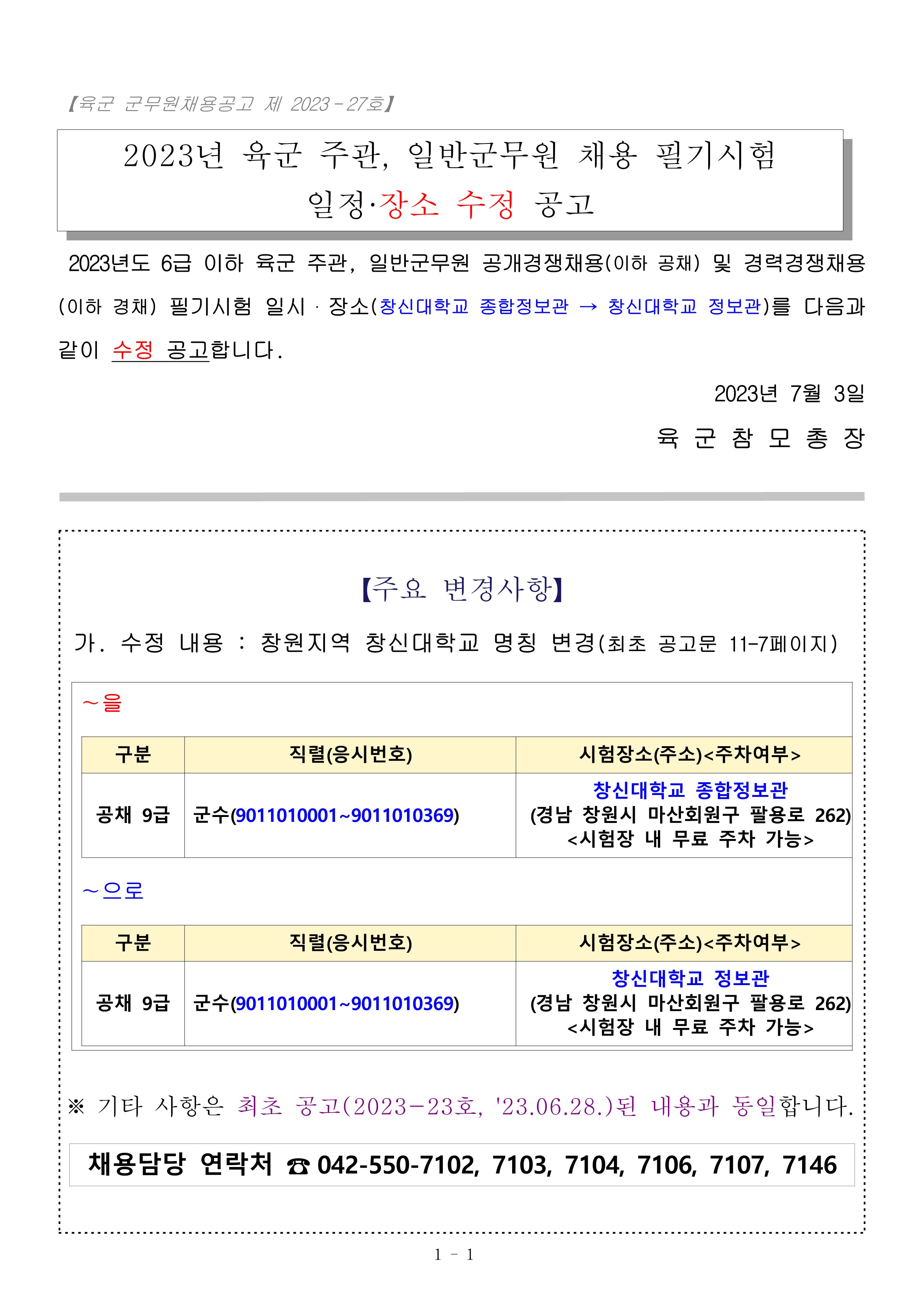23³â À°±º ÁÖ°ü ÀϹݱº¹«¿ø ä¿ë Çʱâ½ÃÇè ÀϽ÷Àå¼Ò ¼öÁ¤ °ø°í.pdf