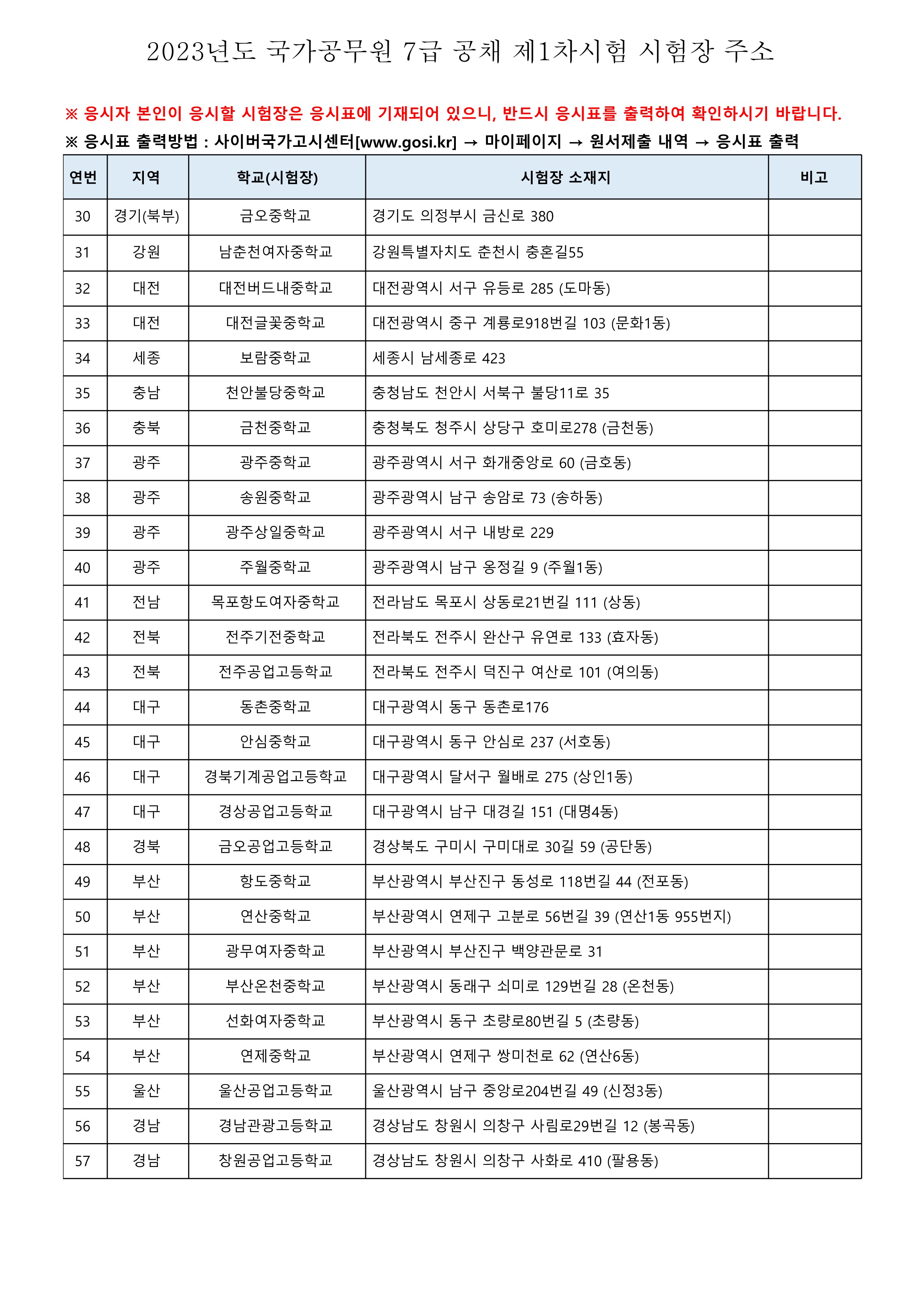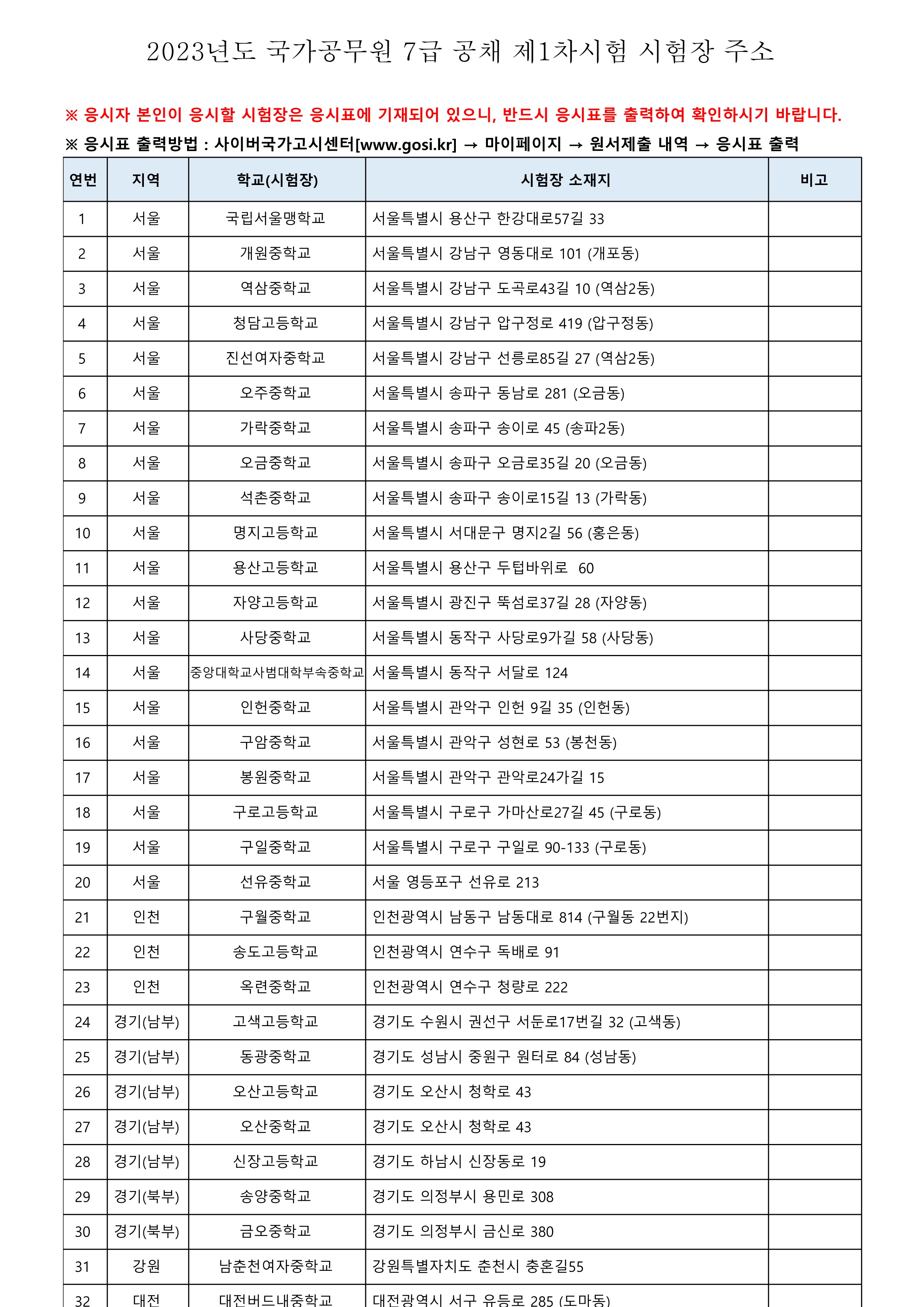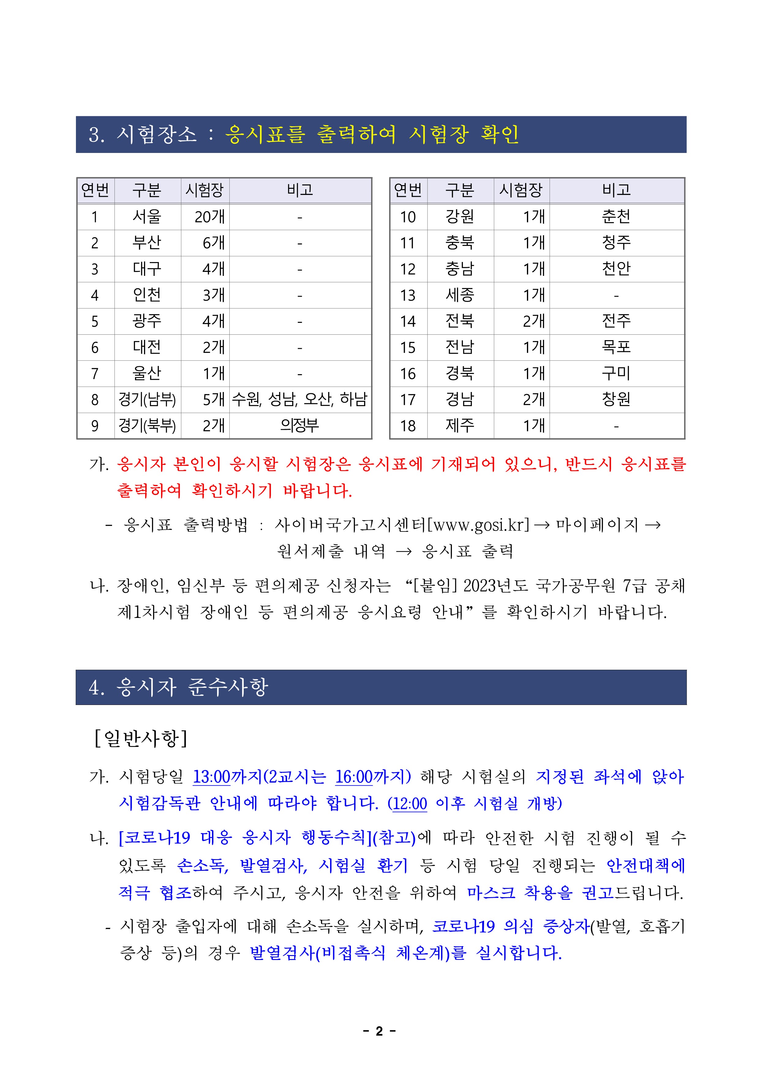 (ºÙÀÓ1) 2023³âµµ ±¹°¡°ø¹«¿ø 7±Þ °øÃ¤ Á¦1Â÷½ÃÇè ÀϽá¤Àå¼Ò ¹× ÀÀ½ÃÀÚ Áؼö»çÇ×.pdf