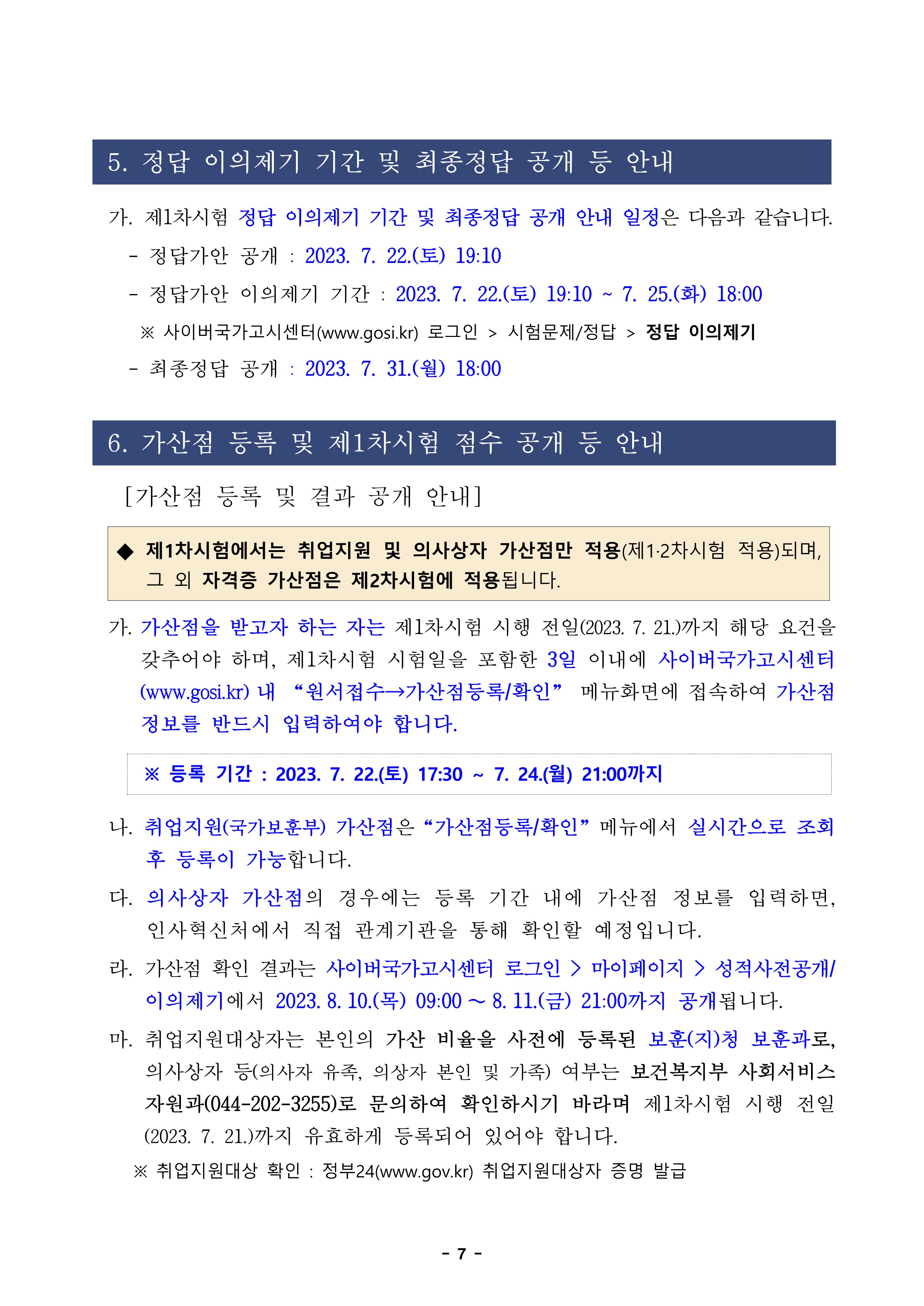 2023³âµµ ±¹°¡°ø¹«¿ø 7±Þ °øÃ¤ Á¦1Â÷½ÃÇè ÀϽá¤Àå¼Ò ¹× ÀÀ½ÃÀÚ Áؼö»çÇ× °ø°í ÷ºÎÆÄÀÏ.zip