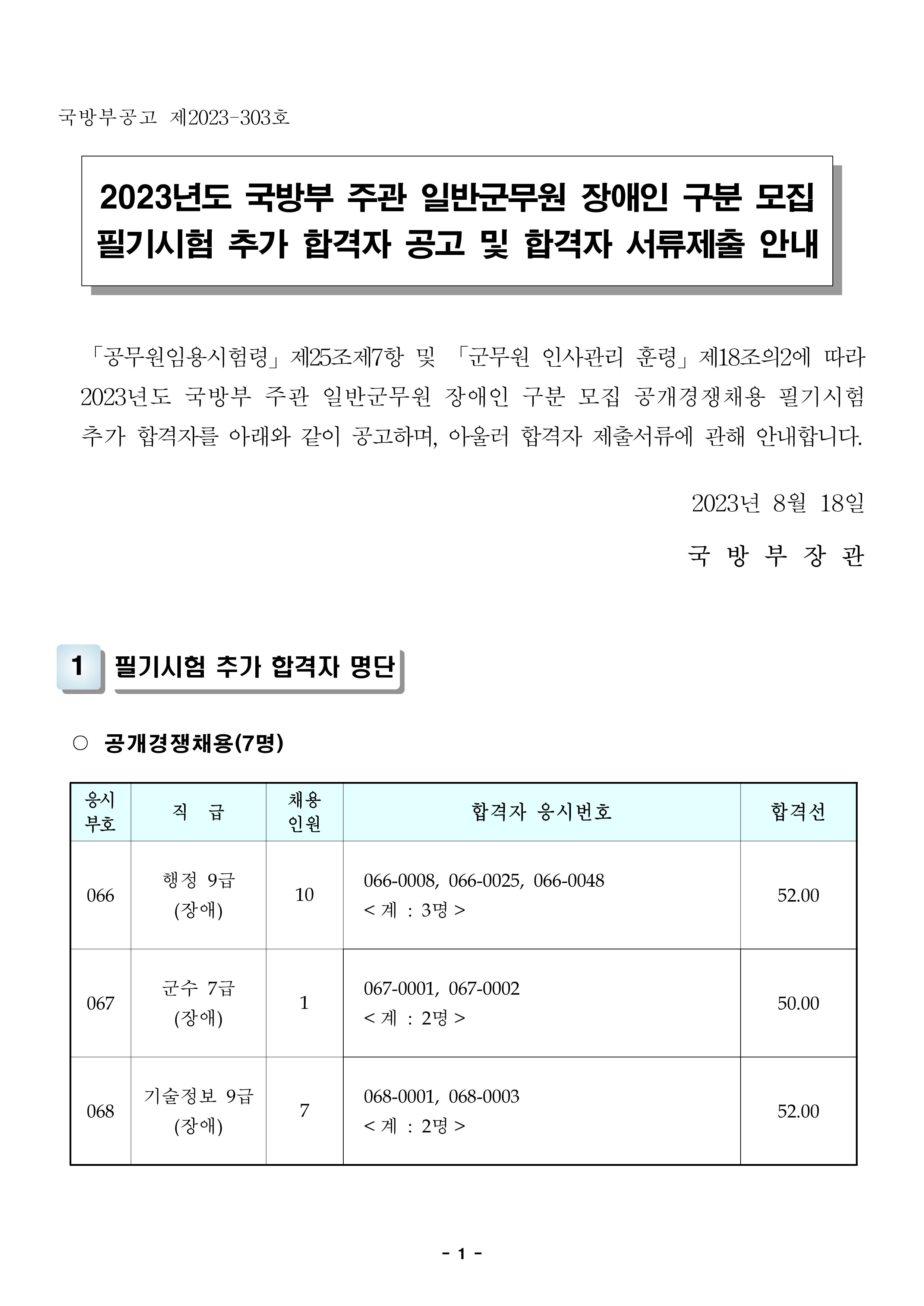 ¡Ú2023³âµµ_±¹¹æºÎ_ÁÖ°ü_ÀϹݱº¹«¿ø_Àå¾ÖÀÎ_±¸ºÐ_¸ðÁý_Çʱâ½ÃÇè_Ãß°¡_ÇÕ°ÝÀÚ_°ø°í_¹×_ÇÕ°ÝÀÚ_¼·ùÁ¦Ãâ_¾È³».pdf