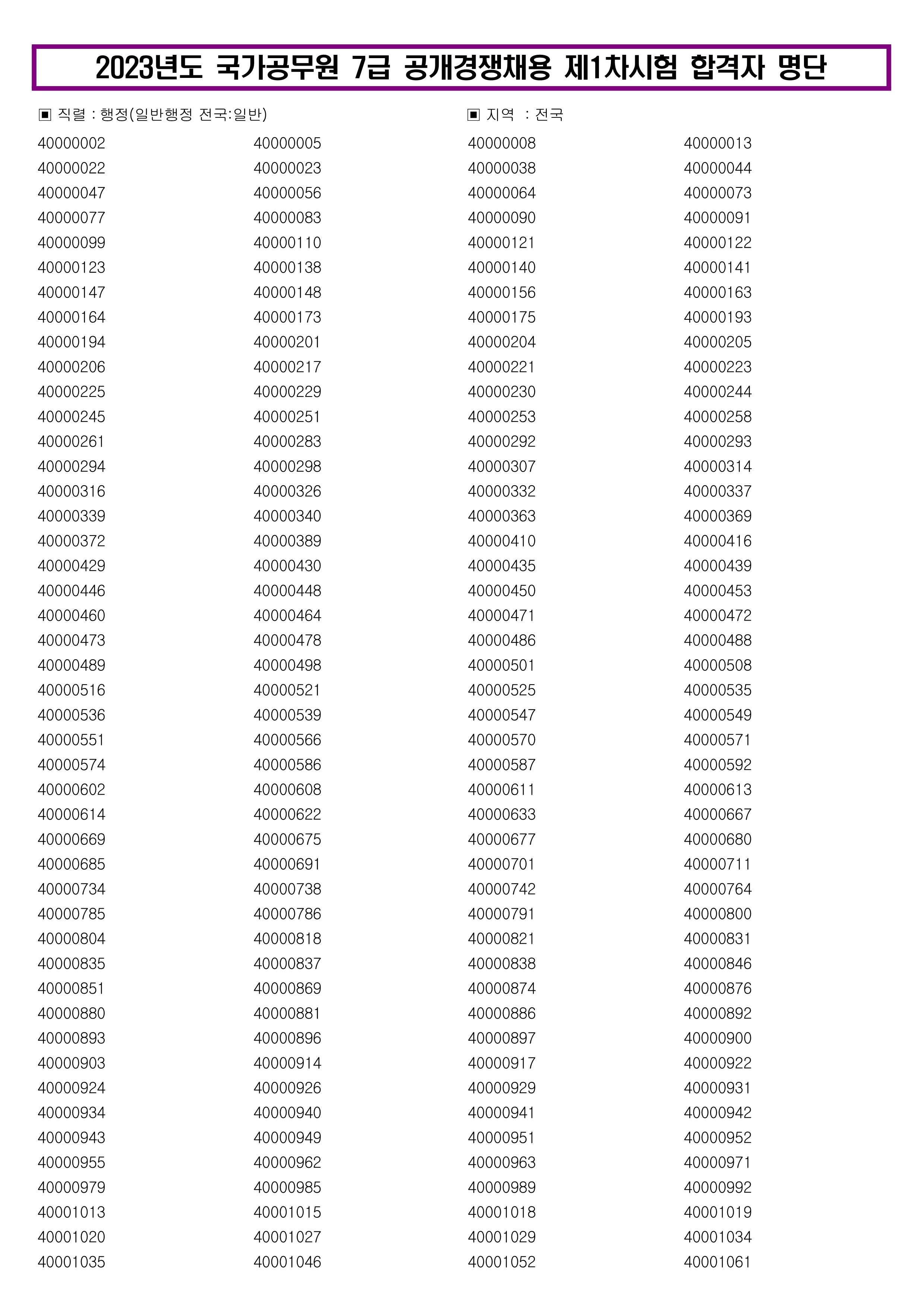 2023³âµµ ±¹°¡°ø¹«¿ø 7±Þ °ø°³°æÀïä¿ë Á¦1Â÷½ÃÇè ÇÕ°ÝÀÚ ¹ßÇ¥