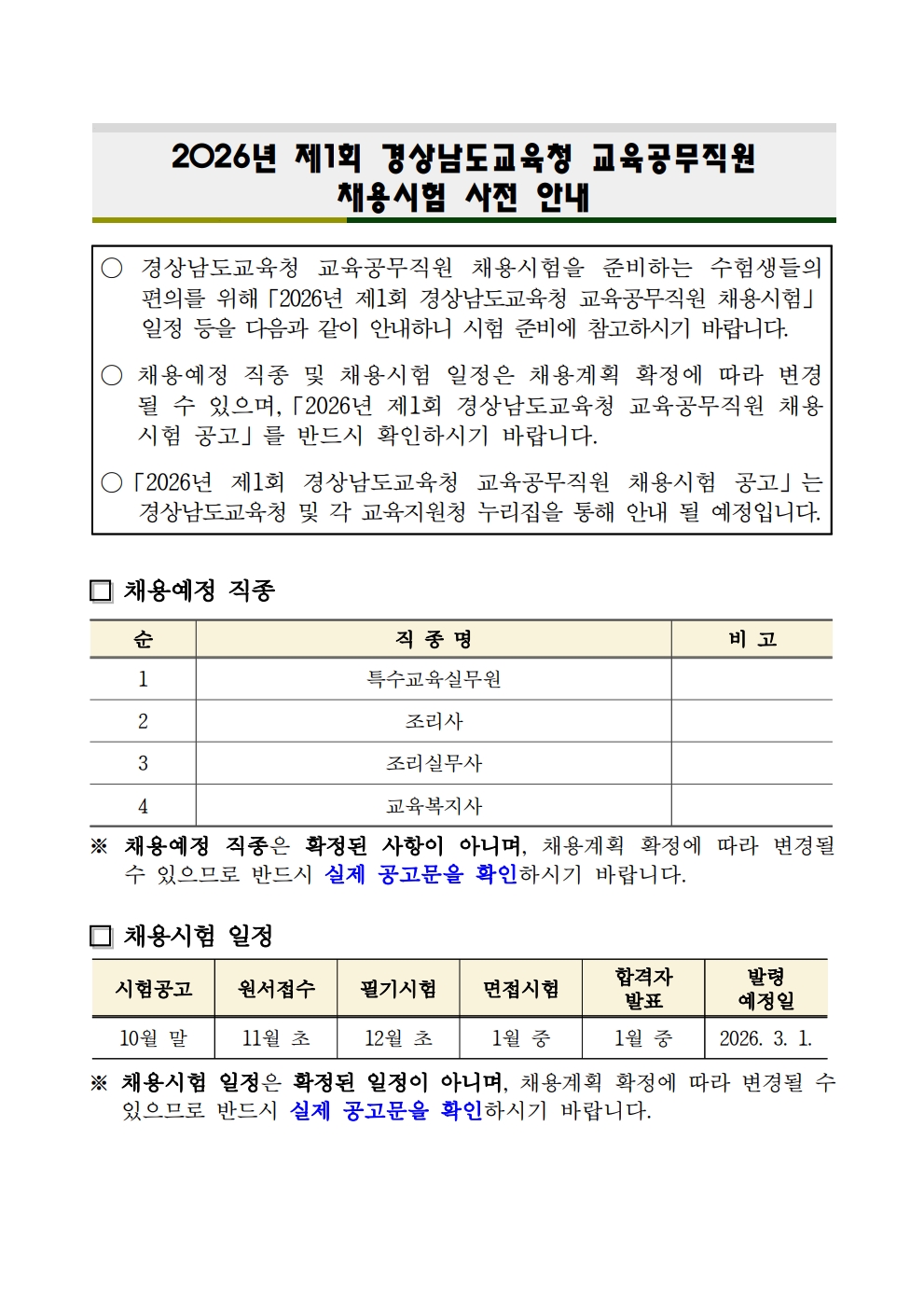 2026³â Á¦1ȸ °æ»ó³²µµ±³À°Ã» ±³À°°ø¹«Á÷¿ø ä¿ë½ÃÇè »çÀü ¾È³».pdf