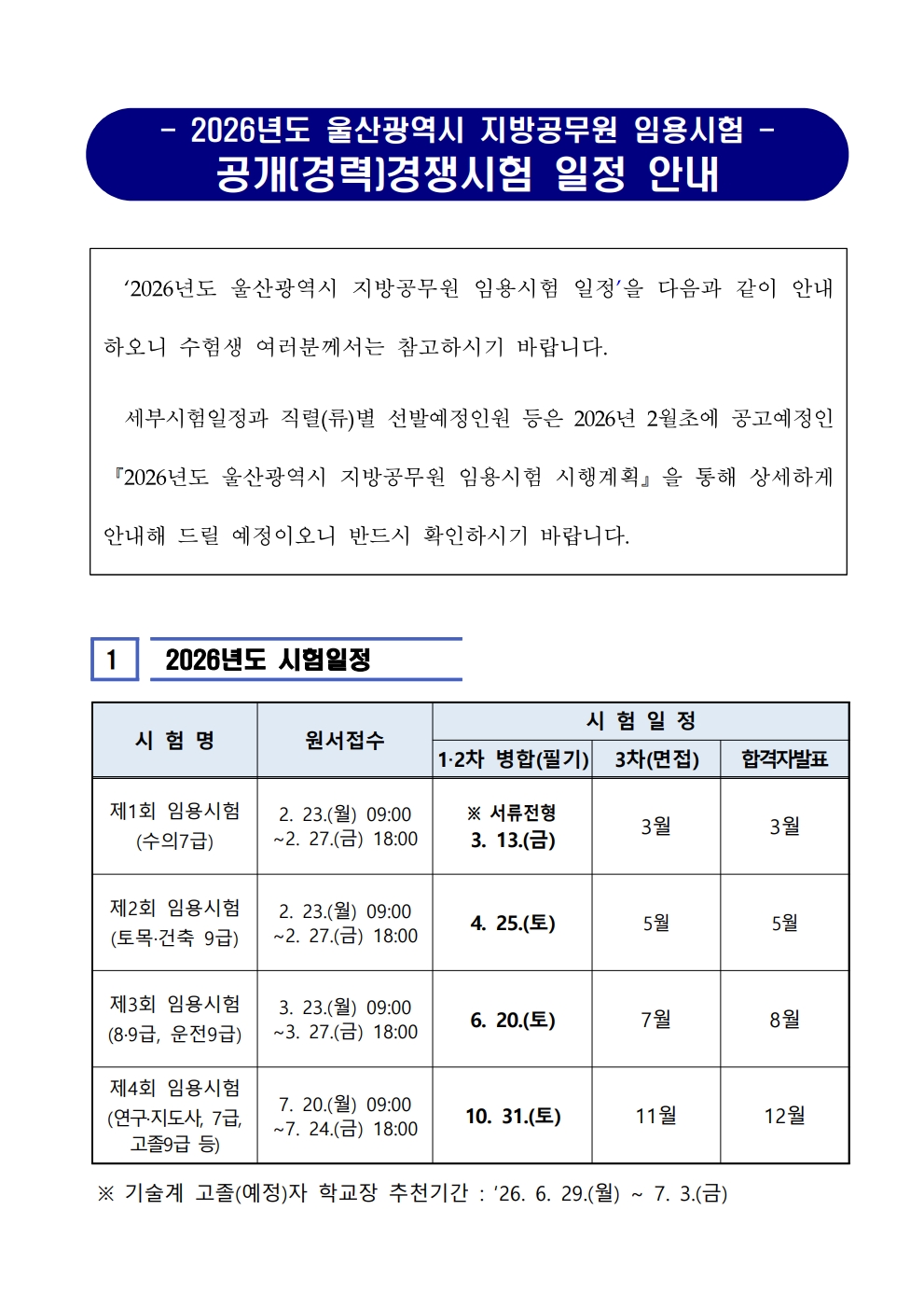 2026³âµµ ¿ï»ê±¤¿ª½Ã Áö¹æ°ø¹«¿ø ÀÓ¿ë½ÃÇè ÀÏÁ¤ ¾È³».pdf