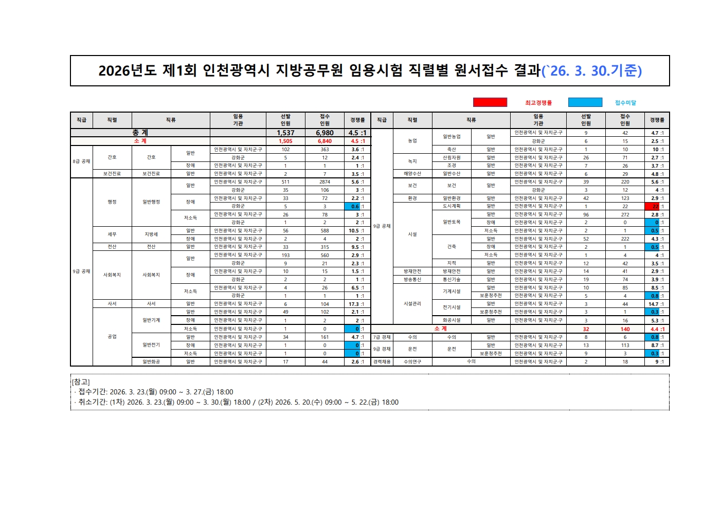 2026³âµµ Á¦1ȸ Áö¹æ°ø¹«¿ø ÀÓ¿ë½ÃÇè Á÷·Äº° ¿ø¼Á¢¼ö °á°ú(26.3.30.±âÁØ).pdf