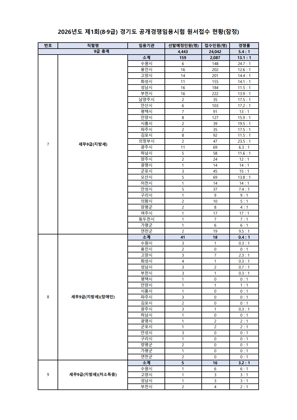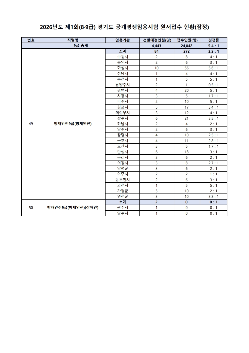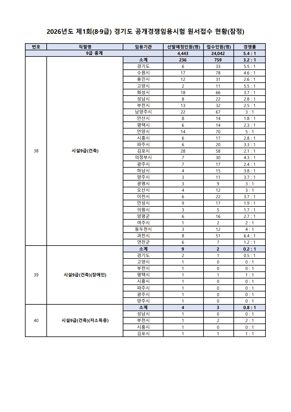 2026³âµµ Á¦1ȸ(8¡¤9±Þ) °æ±âµµ °ø°³°æÀïÀÓ¿ë½ÃÇè ¿ø¼Á¢¼ö ÇöȲ(ÀáÁ¤).pdf
