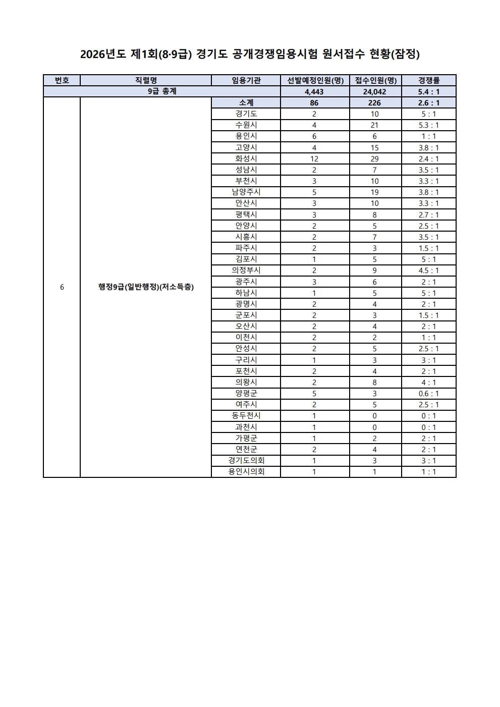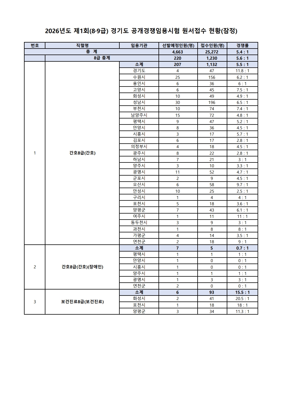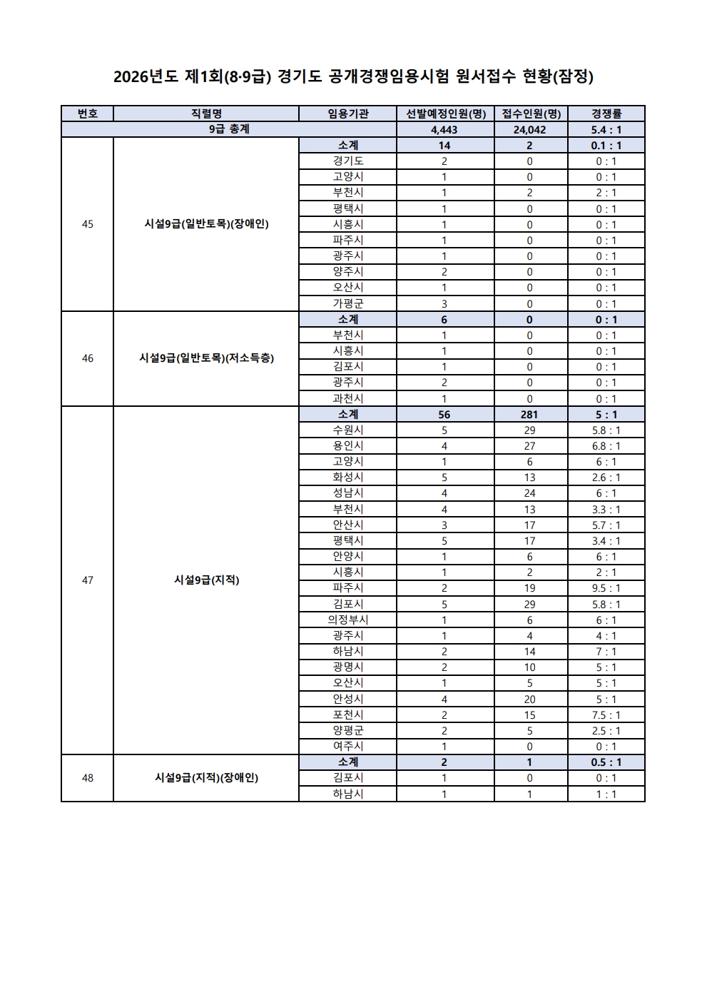 2026³âµµ Á¦1ȸ(8¡¤9±Þ) °æ±âµµ °ø°³°æÀïÀÓ¿ë½ÃÇè ¿ø¼Á¢¼ö ÇöȲ(ÀáÁ¤).pdf