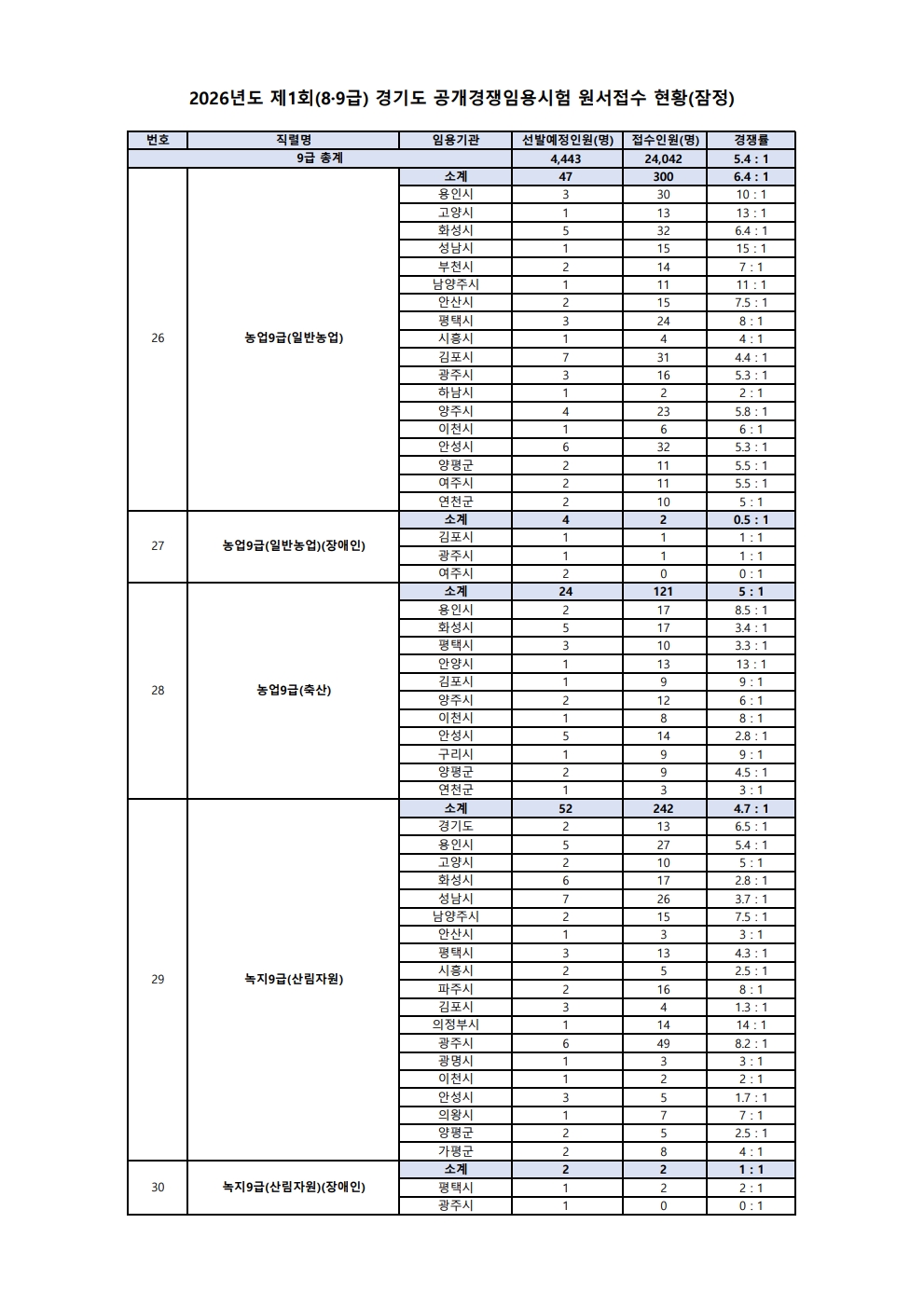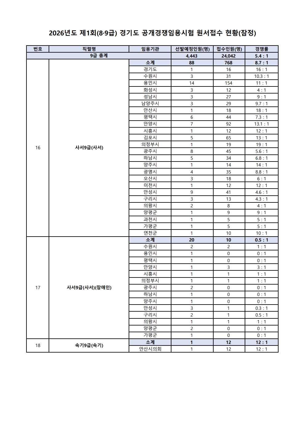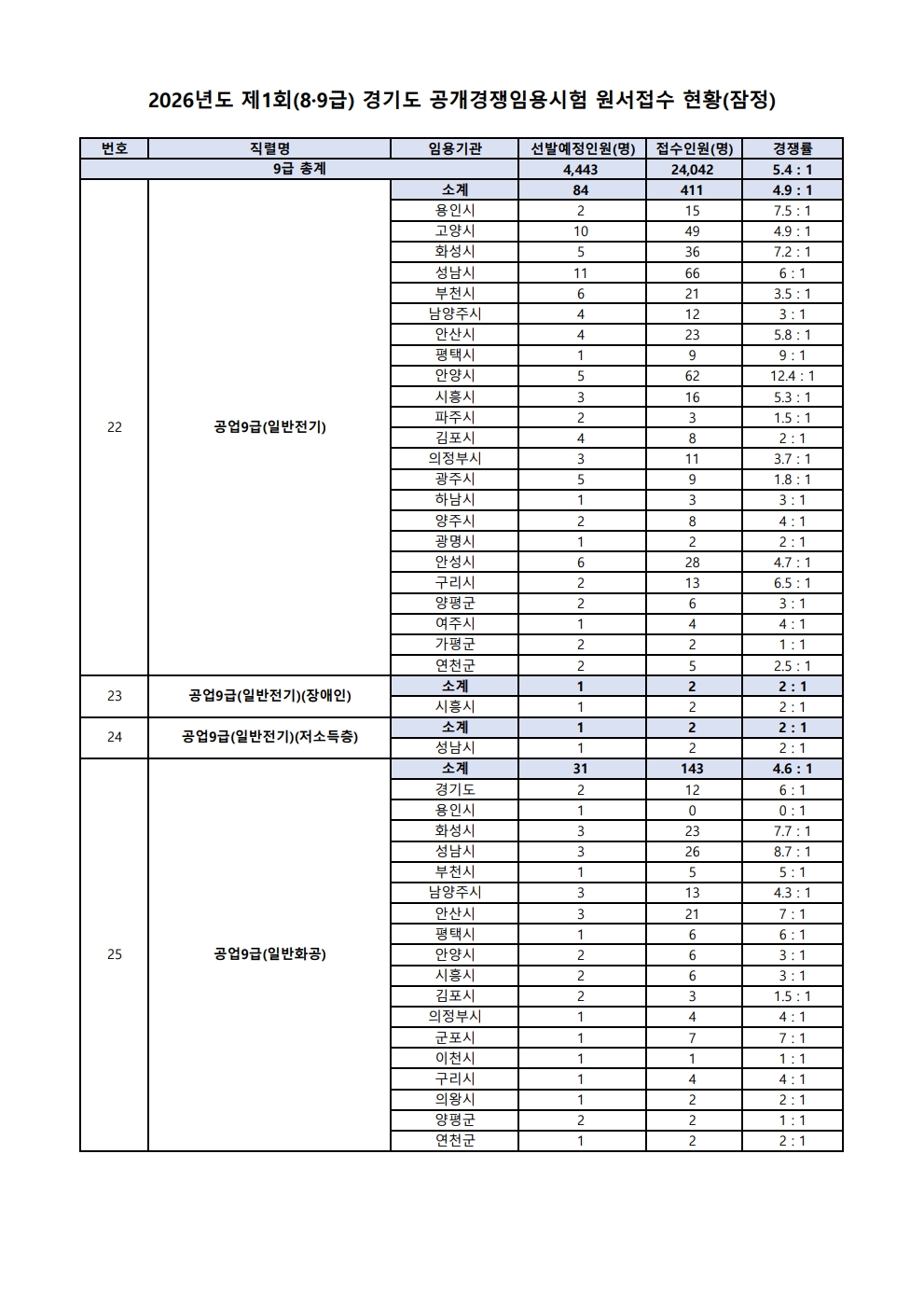 2026³âµµ Á¦1ȸ(8¡¤9±Þ) °æ±âµµ °ø°³°æÀïÀÓ¿ë½ÃÇè ¿ø¼Á¢¼ö ÇöȲ(ÀáÁ¤)