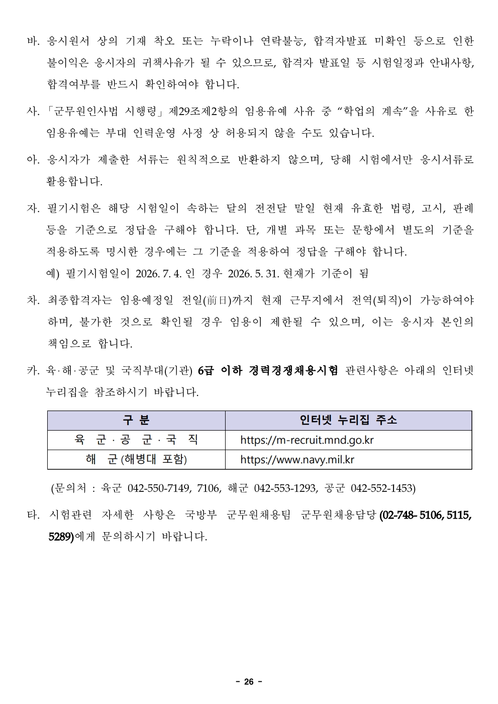 ¡Ú2026³âµµ_±¹¹æºÎ_ÁÖ°ü_ÀϹݱº¹«¿ø_ä¿ë½ÃÇè_½ÃÇà°èȹ_°ø°í_ÃÖÁ¾.pdf