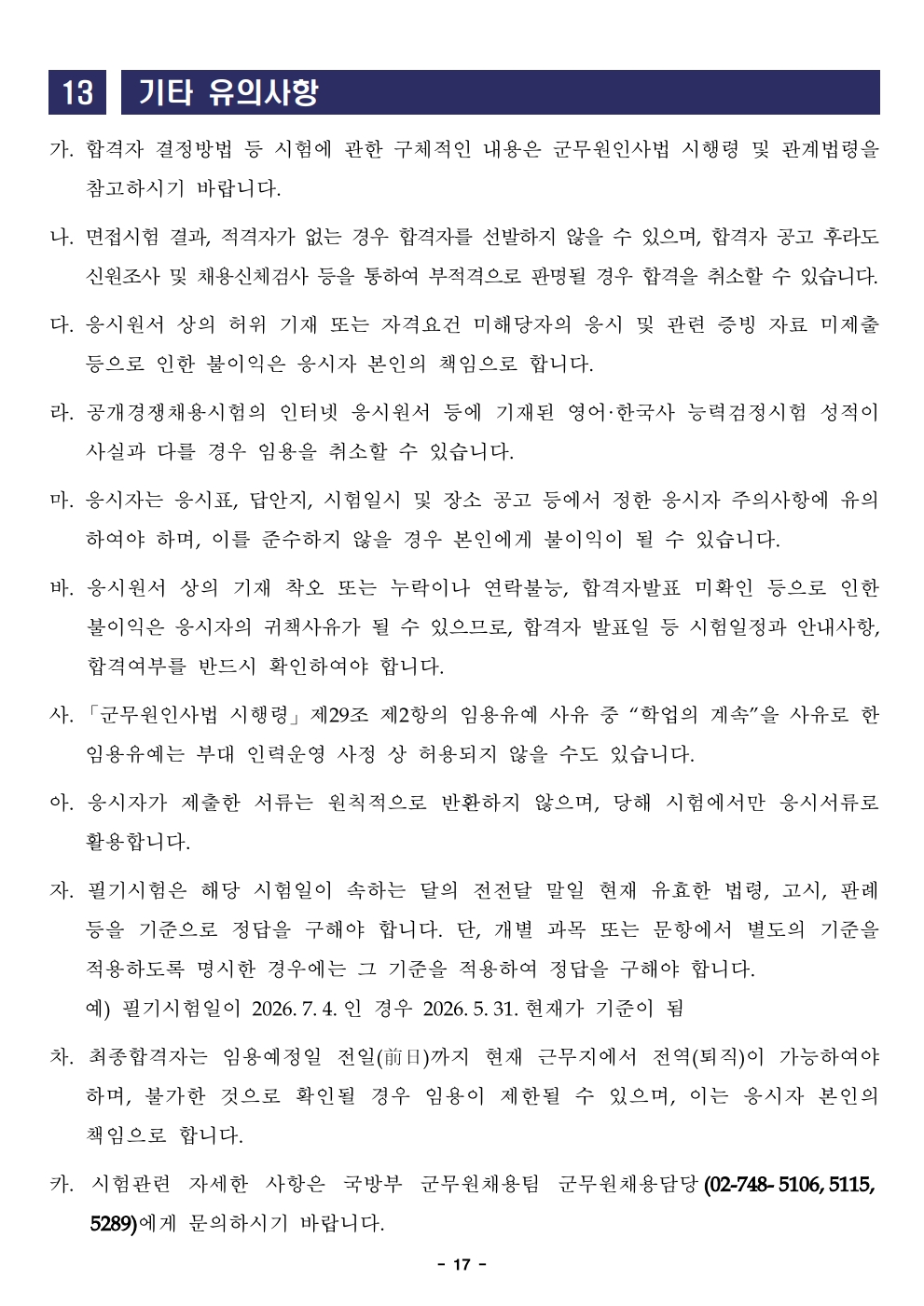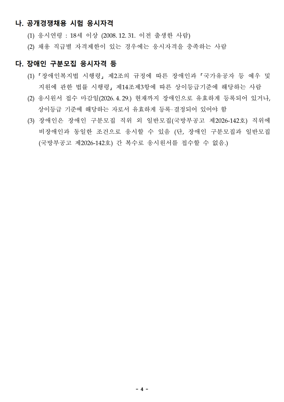 ¡Ú2026³âµµ_±¹¹æºÎ_ÁÖ°ü_ÀϹݱº¹«¿ø_Àå¾ÖÀÎ_±¸ºÐ¸ðÁý_½ÃÇà°èȹ_°ø°í_ÃÖÁ¾.pdf