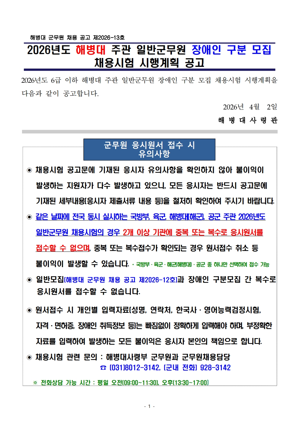 2026³â ÇØº´´ë ÁÖ°ü ÀϹݱº¹«¿ø Àå¾ÖÀÎ ±¸ºÐ¸ðÁý ä¿ë½ÃÇè ½ÃÇà°èȹ °ø°í(ÃÖÁ¾).pdf
