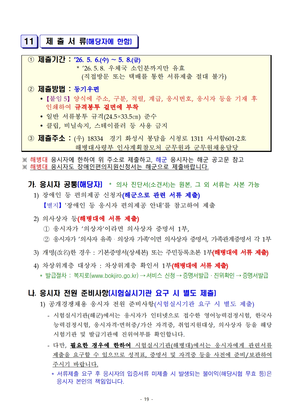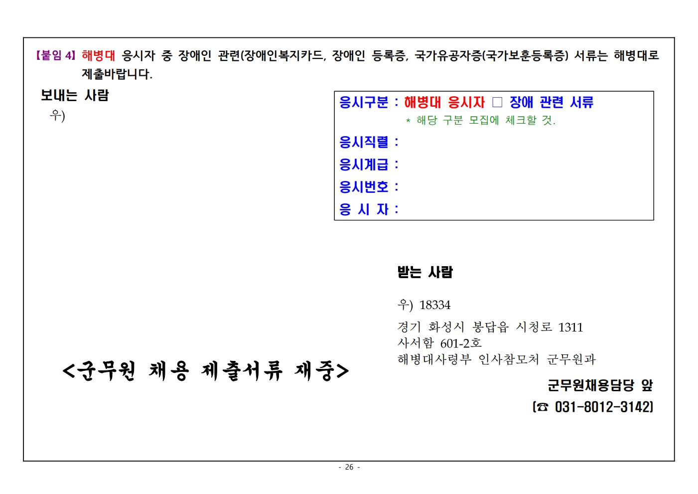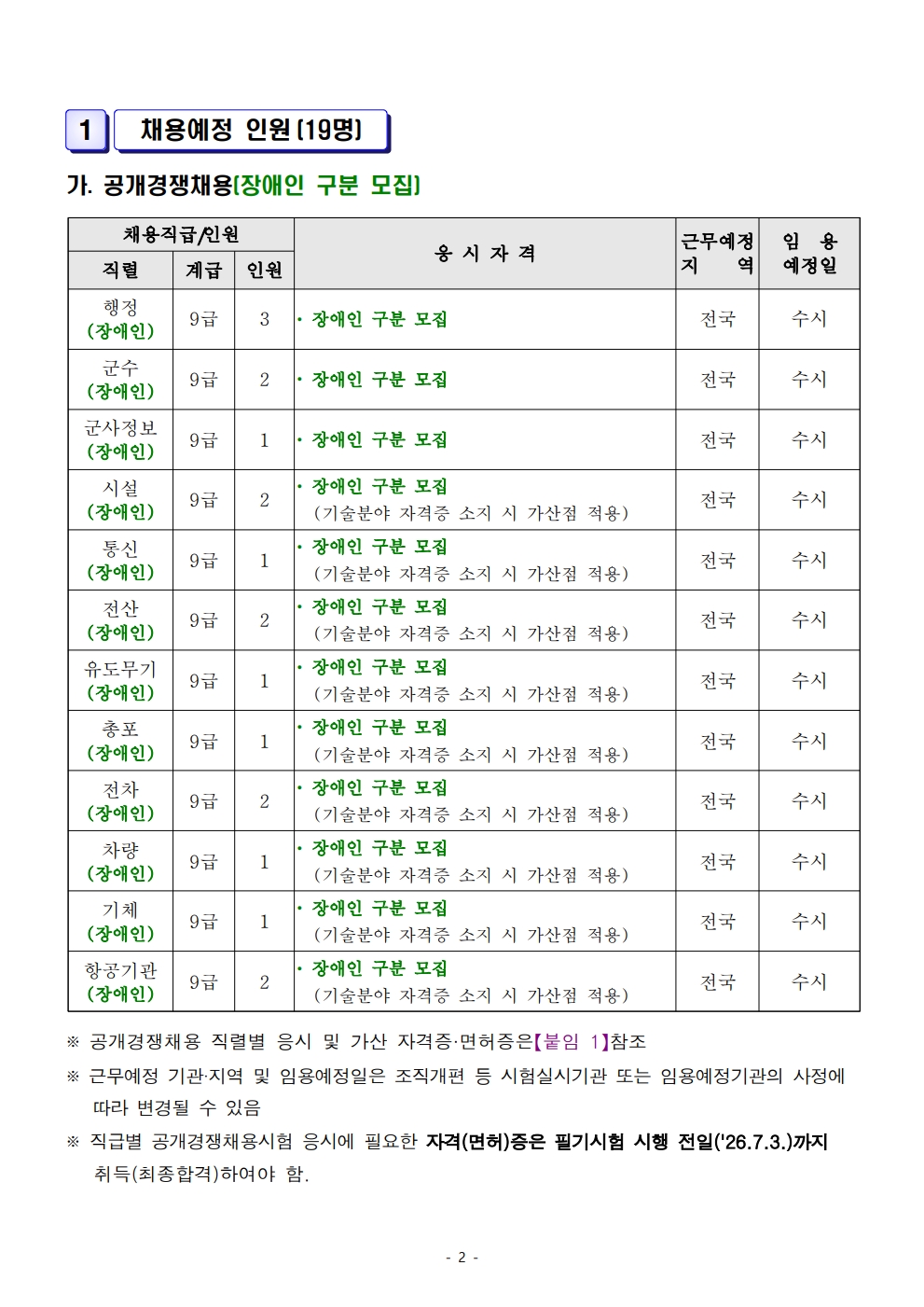 2026³âµµ ÇØº´´ë ÁÖ°ü ÀϹݱº¹«¿ø Àå¾ÖÀÎ ±¸ºÐ¸ðÁý ä¿ë½ÃÇè ½ÃÇà°èȹ °ø°í (19¸í ä¿ë)