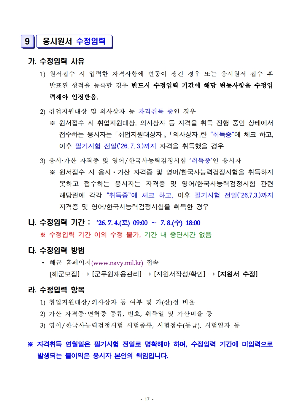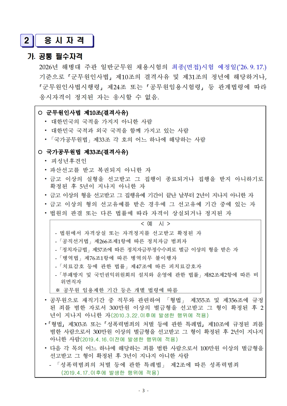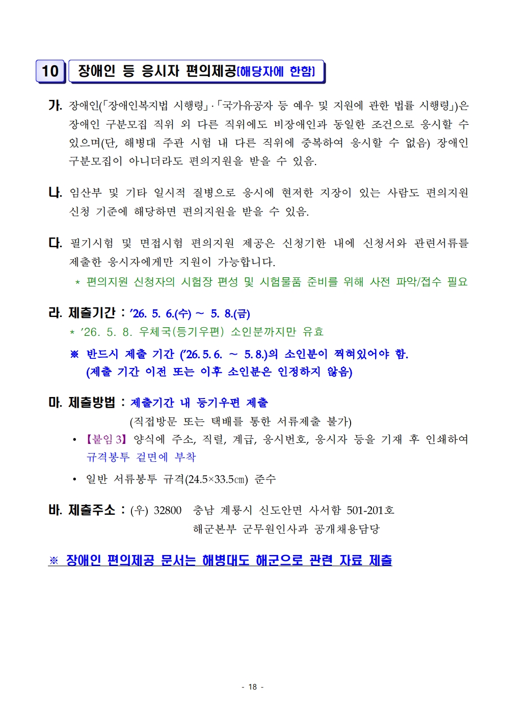 2026³âµµ ÇØº´´ë ÁÖ°ü ÀϹݱº¹«¿ø Àå¾ÖÀÎ ±¸ºÐ¸ðÁý ä¿ë½ÃÇè ½ÃÇà°èȹ °ø°í (19¸í ä¿ë)