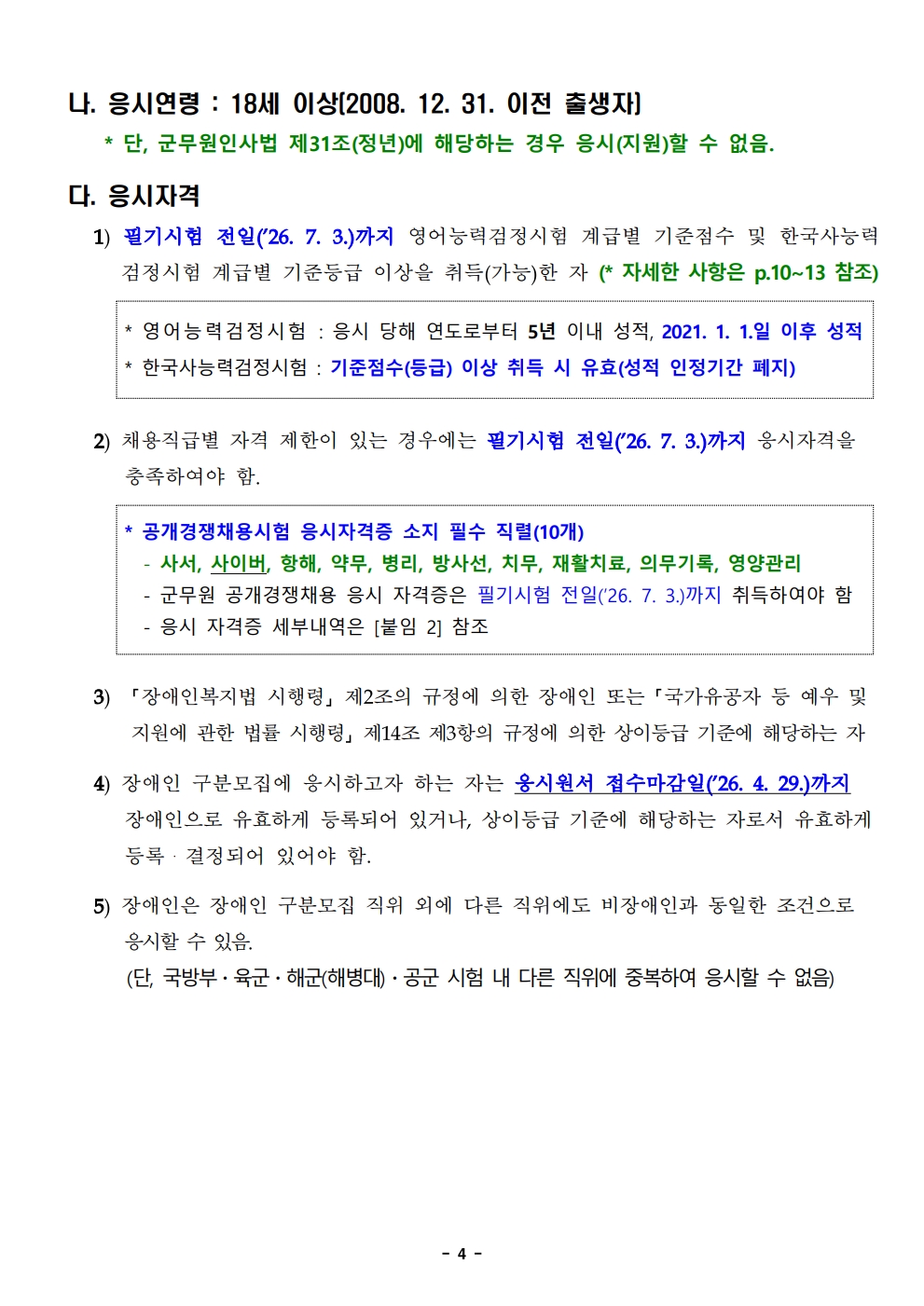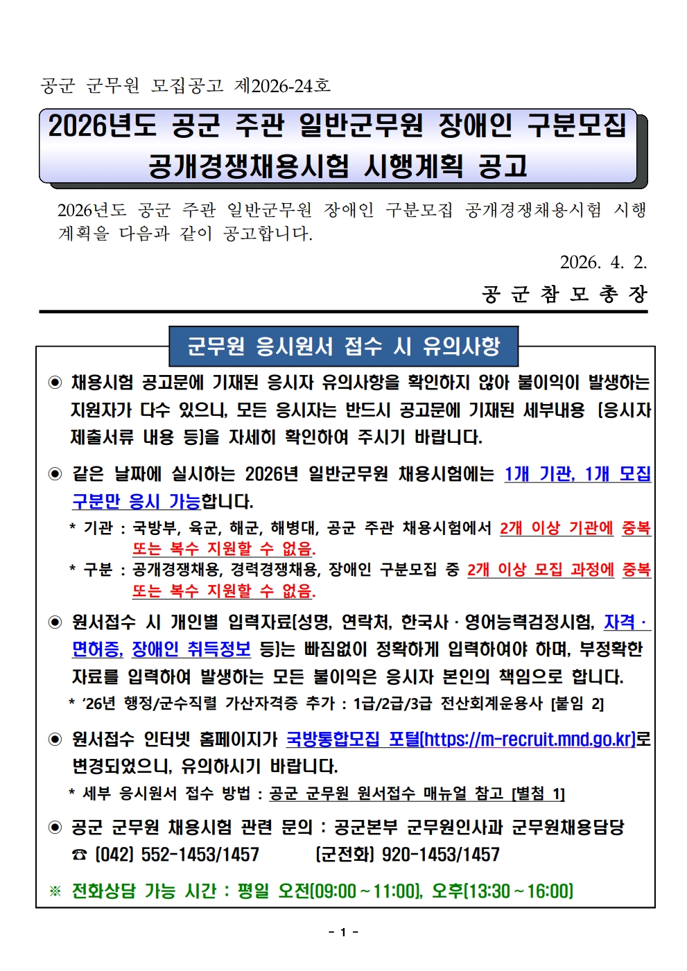 °ø°í26-24 2026³âµµ °ø±º ÁÖ°ü ÀϹݱº¹«¿ø Àå¾ÖÀÎ ±¸ºÐ¸ðÁý °ø°³°æÀïä¿ë½ÃÇè ½ÃÇà°èȹ °ø°í.pdf