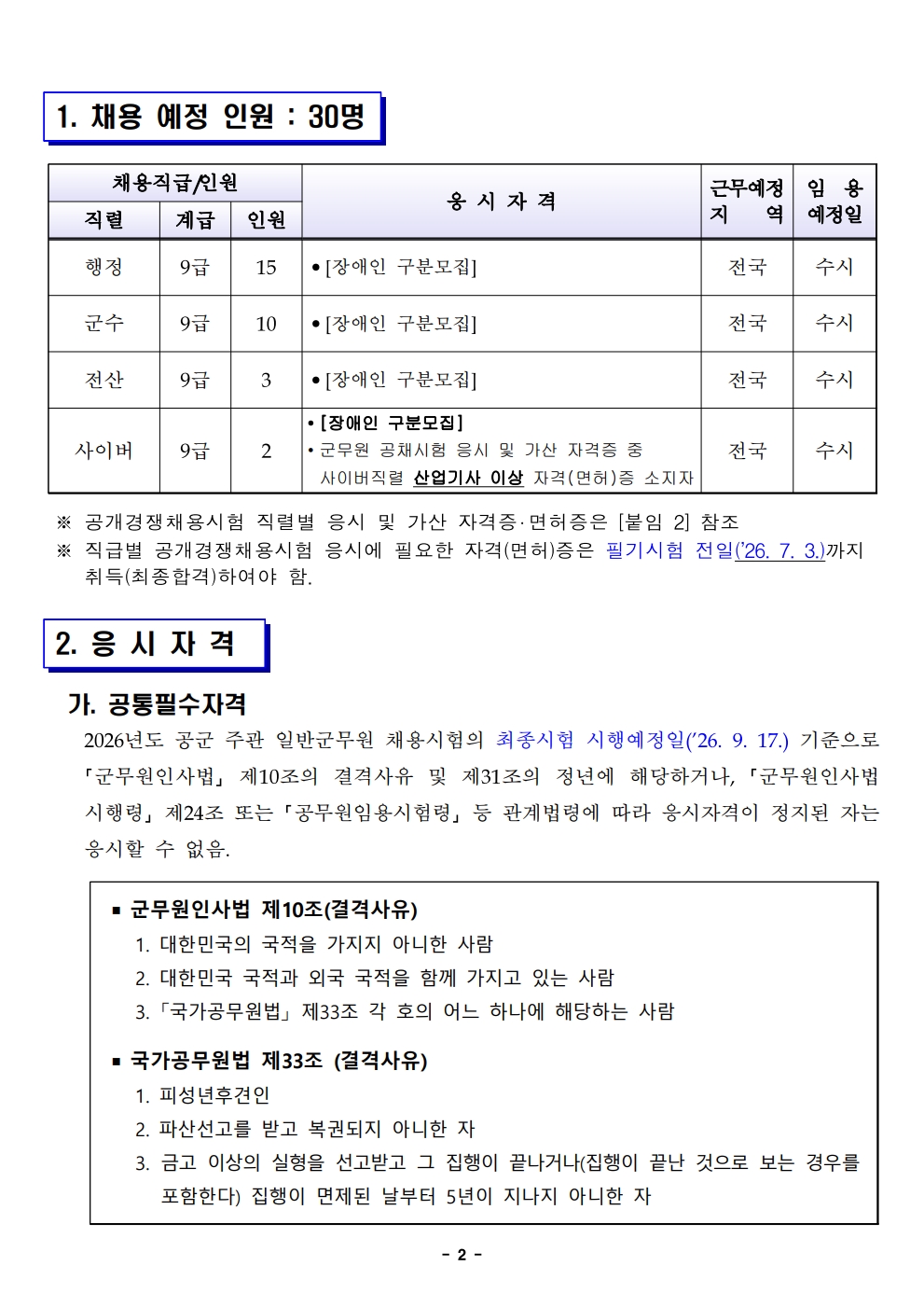 2026³âµµ °ø±º ÁÖ°ü ÀϹݱº¹«¿ø Àå¾ÖÀÎ ±¸ºÐ¸ðÁý ä¿ë½ÃÇè ½ÃÇà°èȹ °ø°í (30¸í ä¿ë)